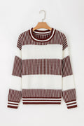 Brown Two Tone Striped Patchwork Drop Shoulder Loose Sweater
