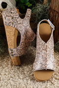 Brown Vintage Floral Leather Rivet Hollowed Platform Sandals