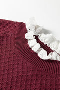Burgundy Contrast Lace Frilled Trim Raglan Sleeve Sweater