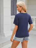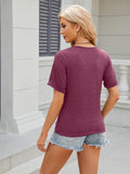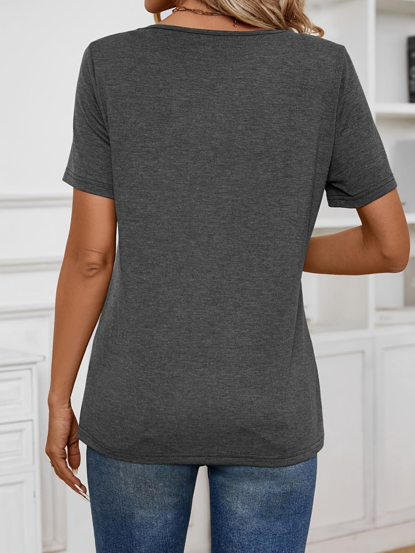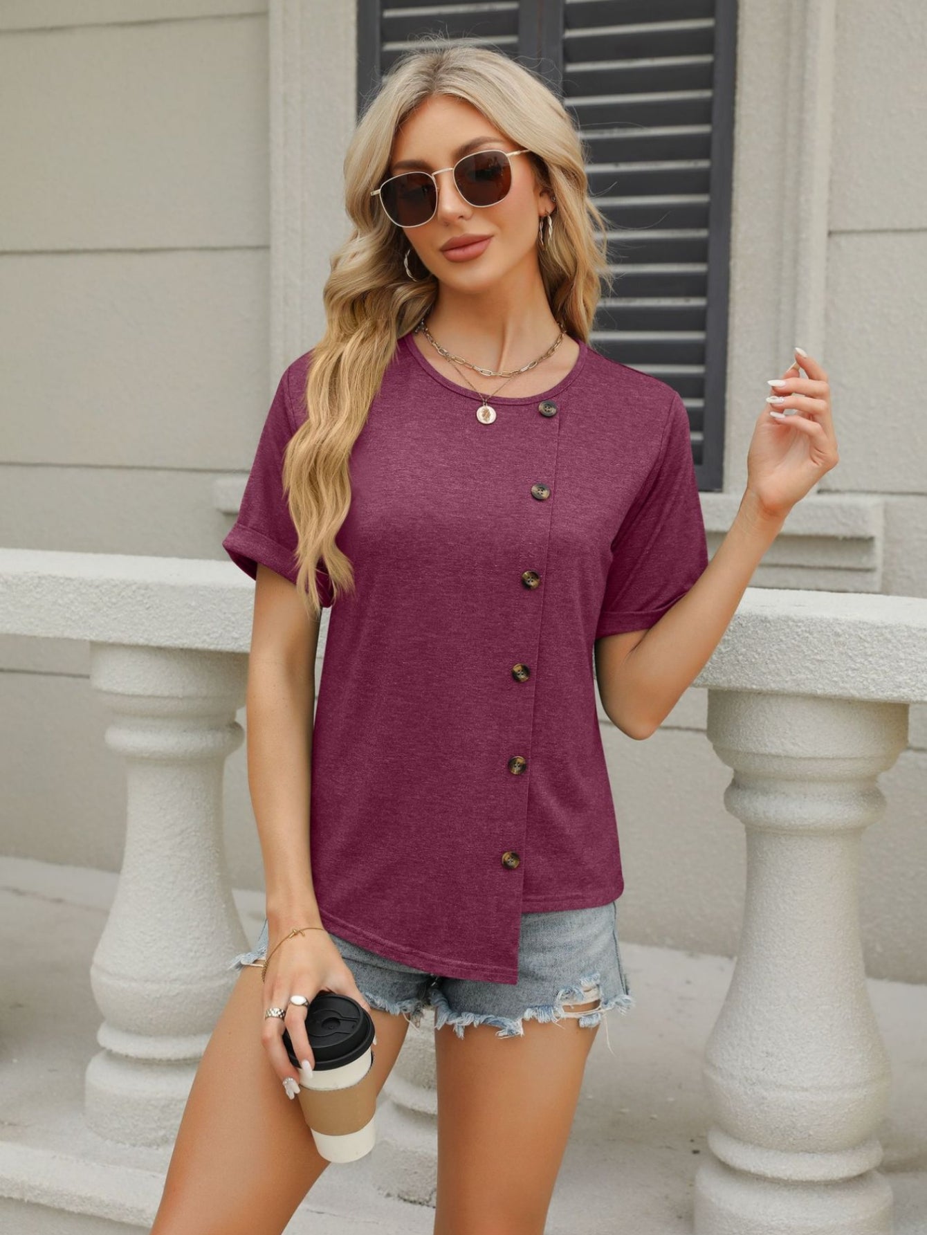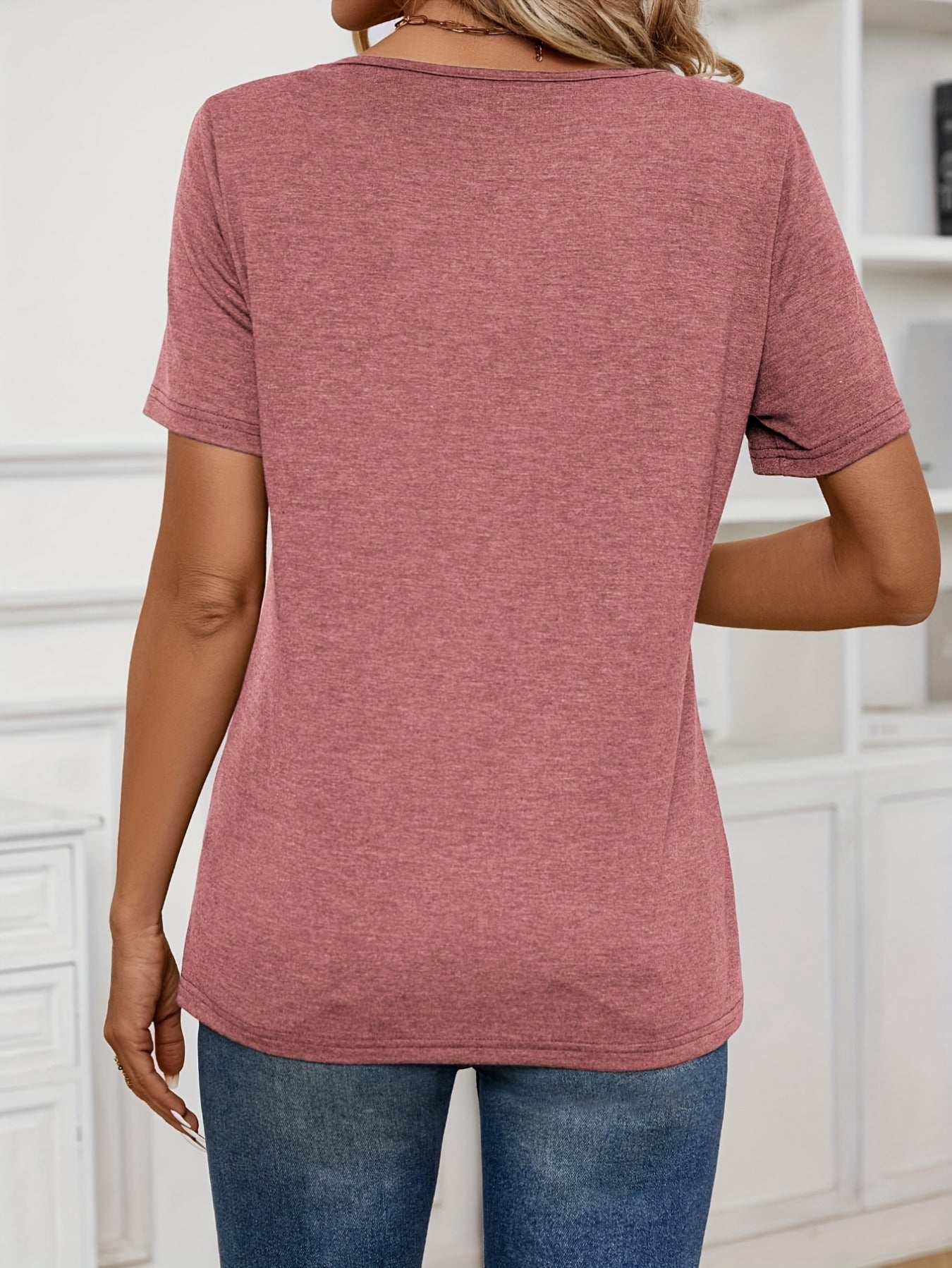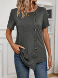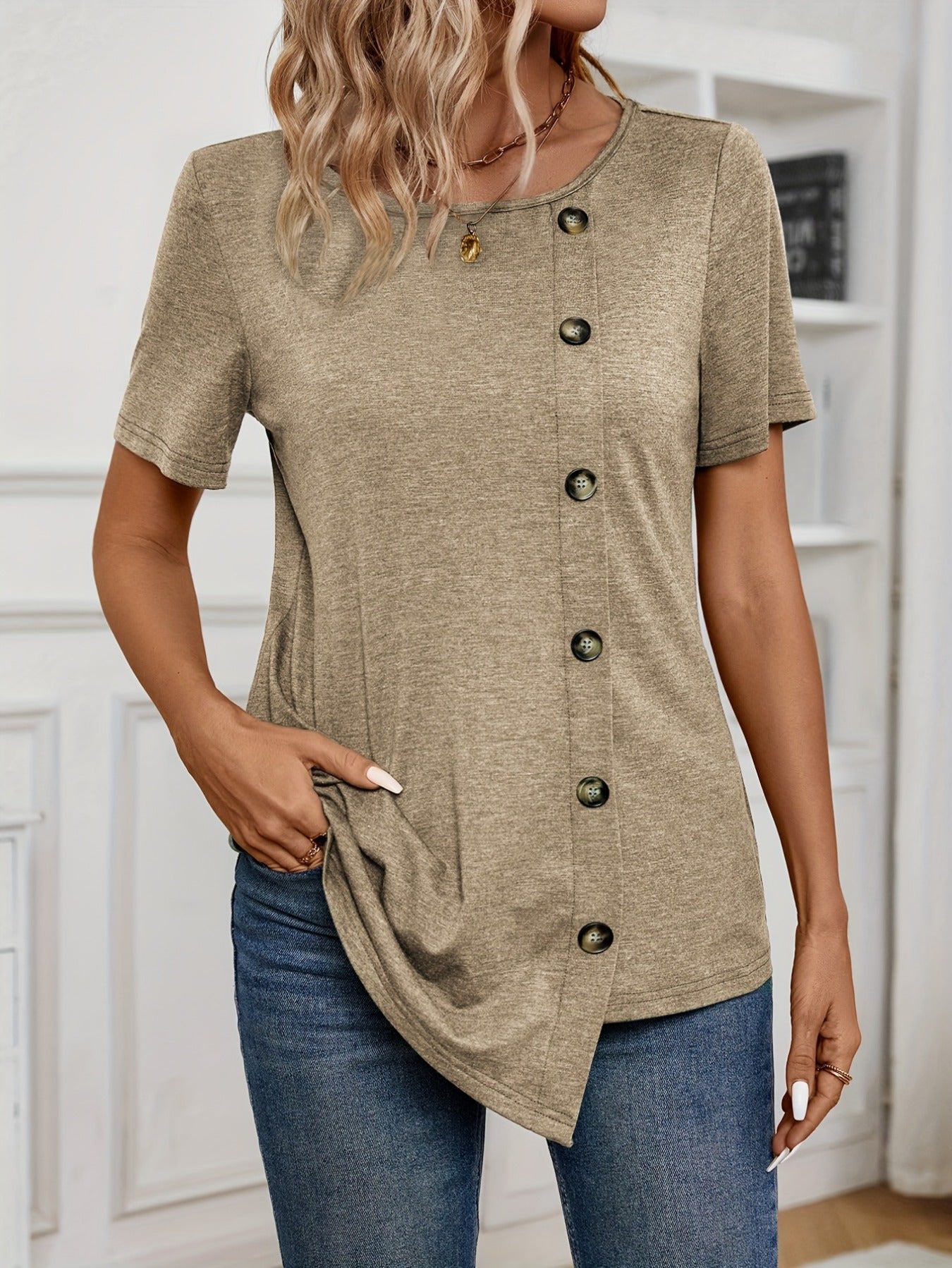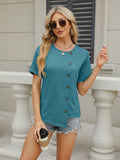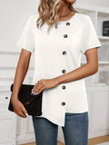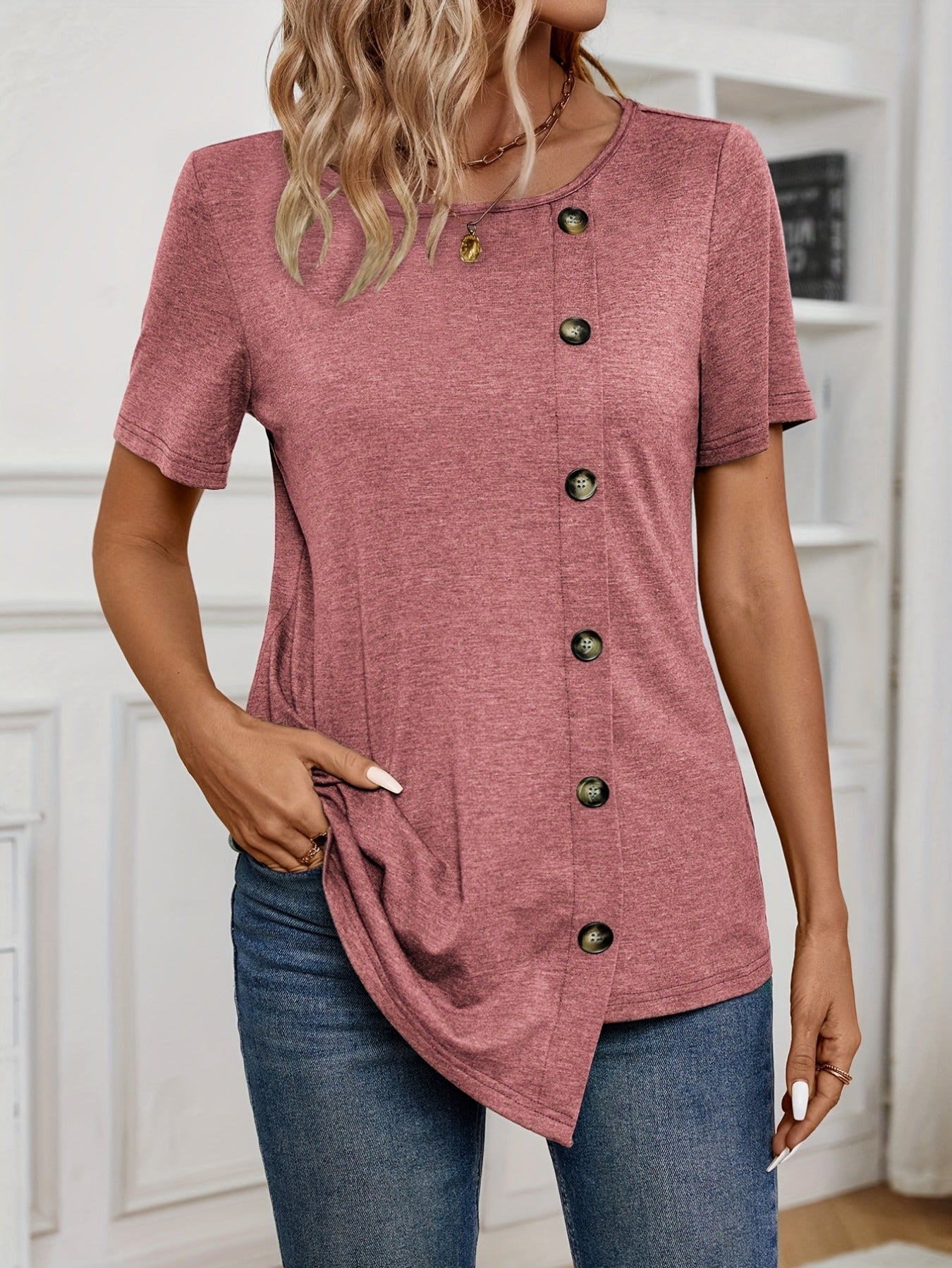Button Decor Solid T-Shirt, Casual Crew Neck Short Sleeve Top