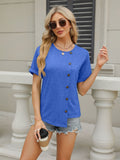 Sale Button Decor Solid T-Shirt, Casual Crew Neck Short Sleeve Top
