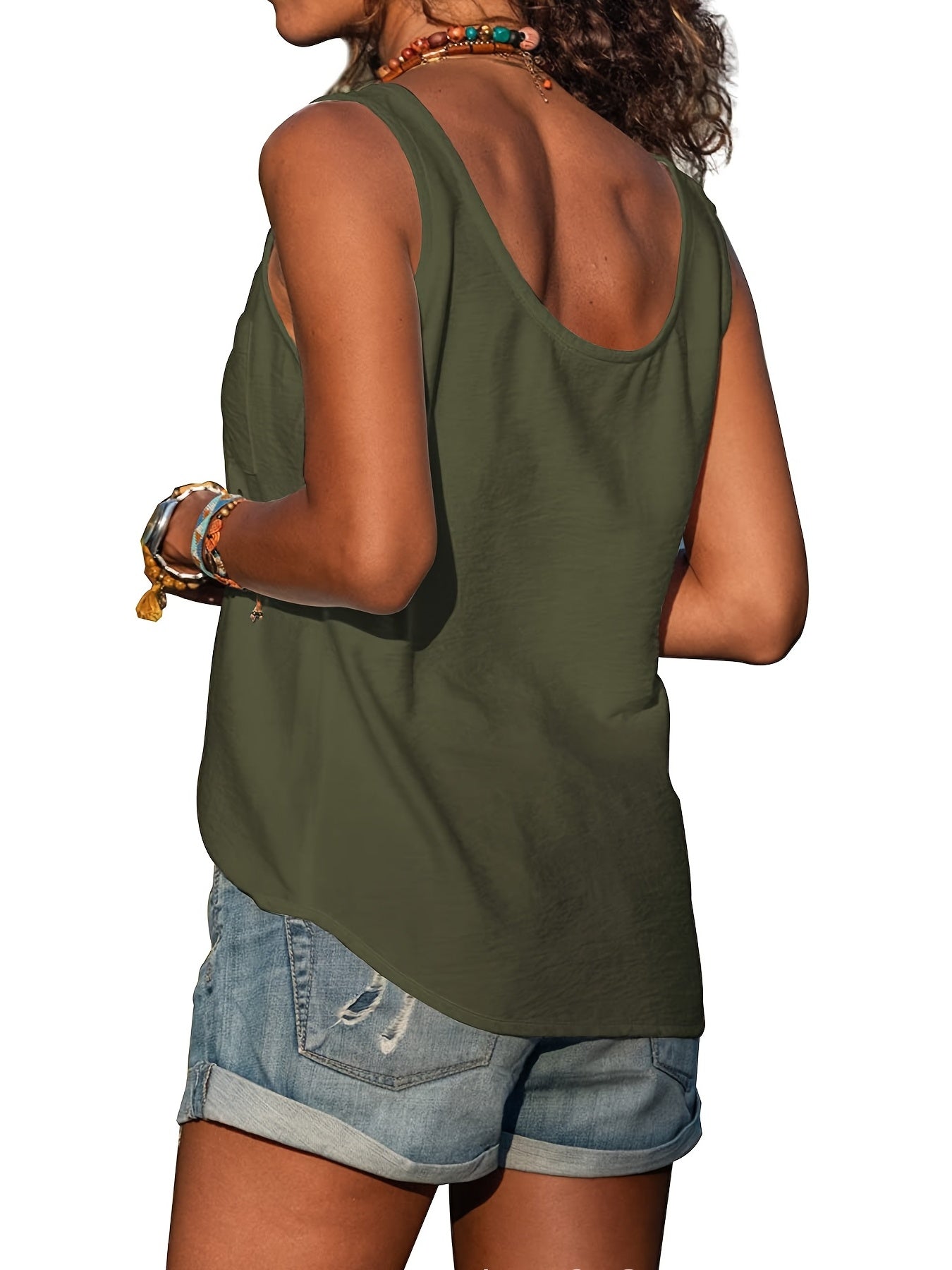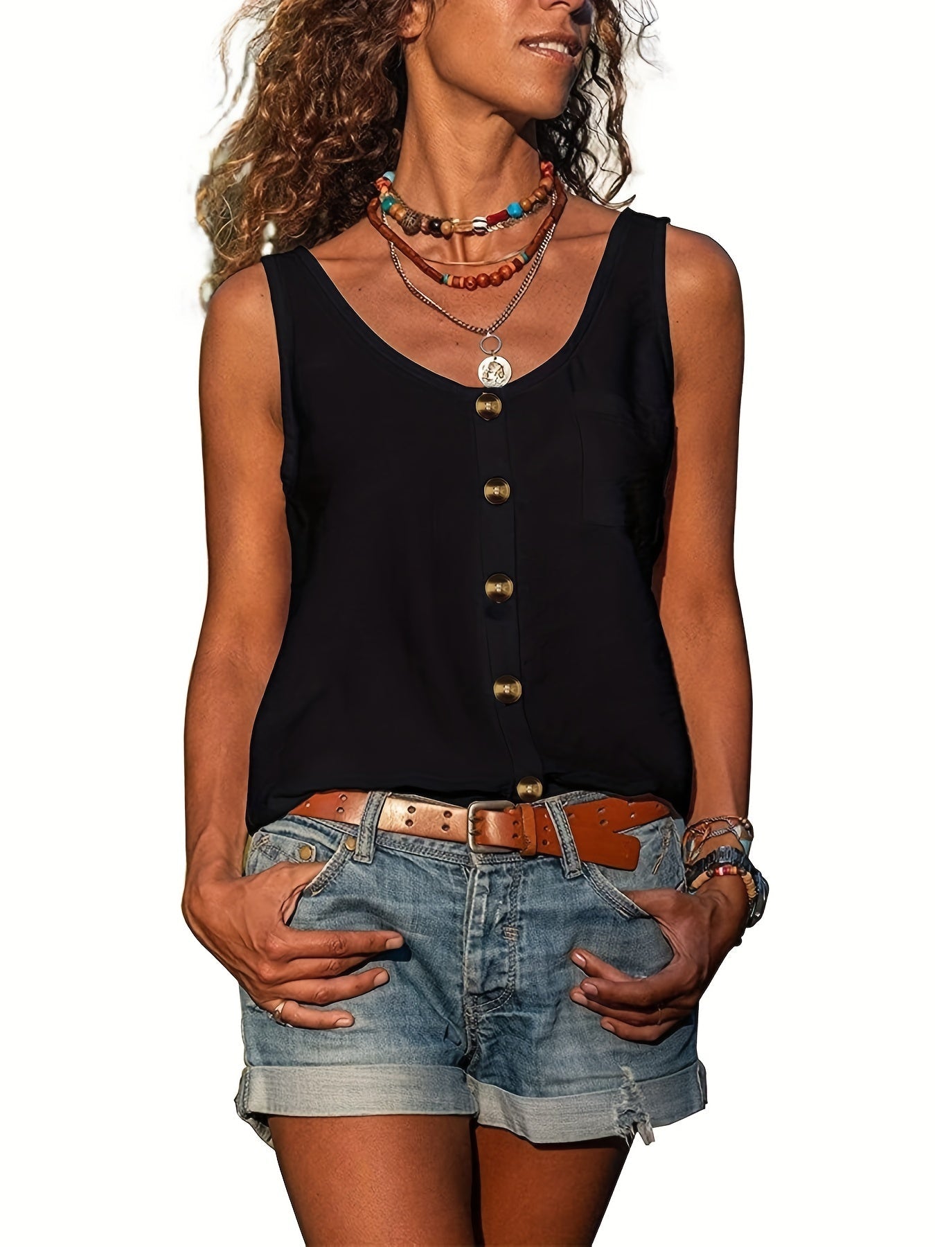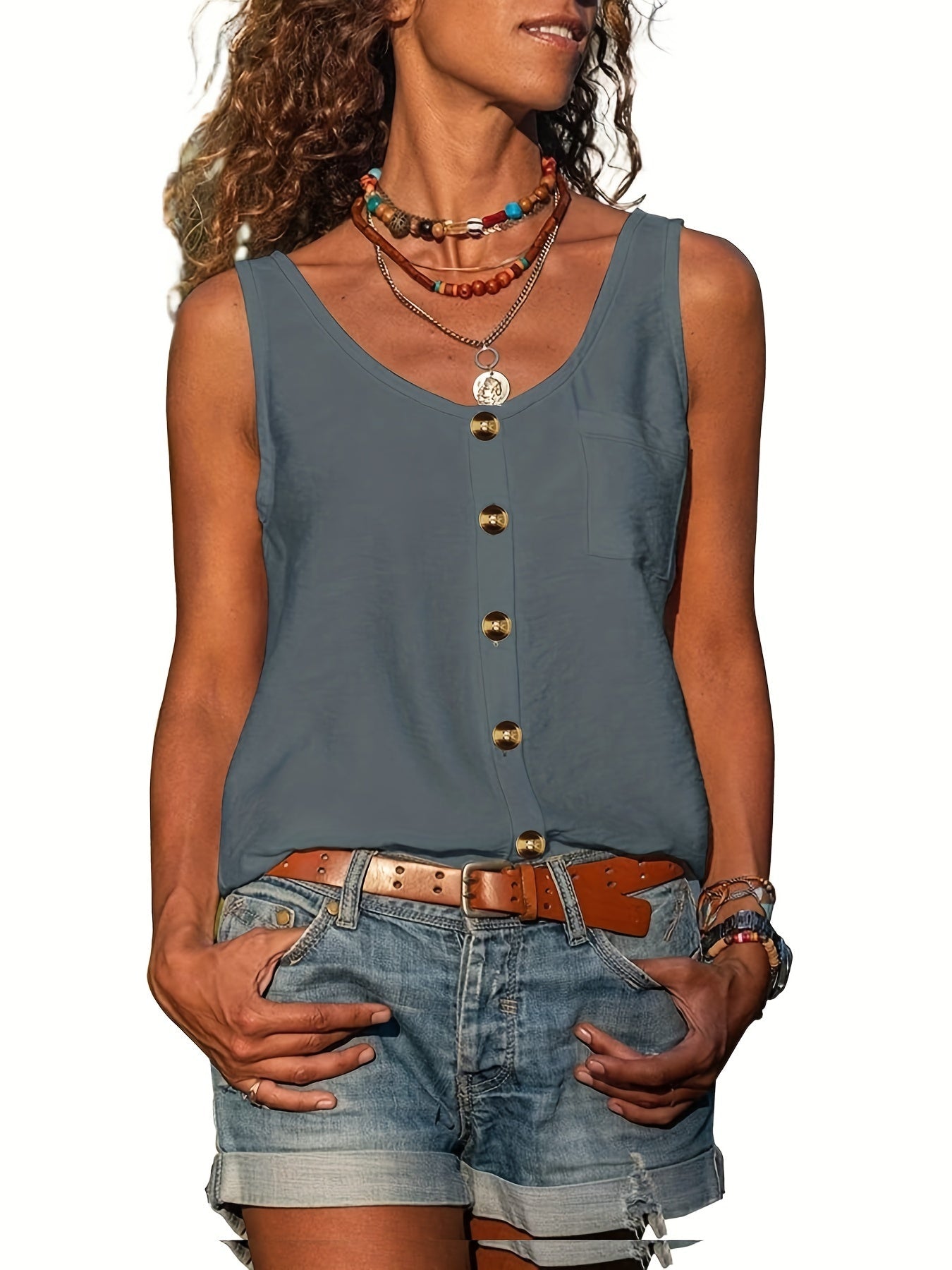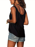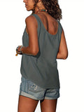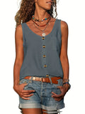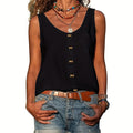 Button Front Scoop Neck Tank Top, Casual Summer Sleeveless Solid Tank Top