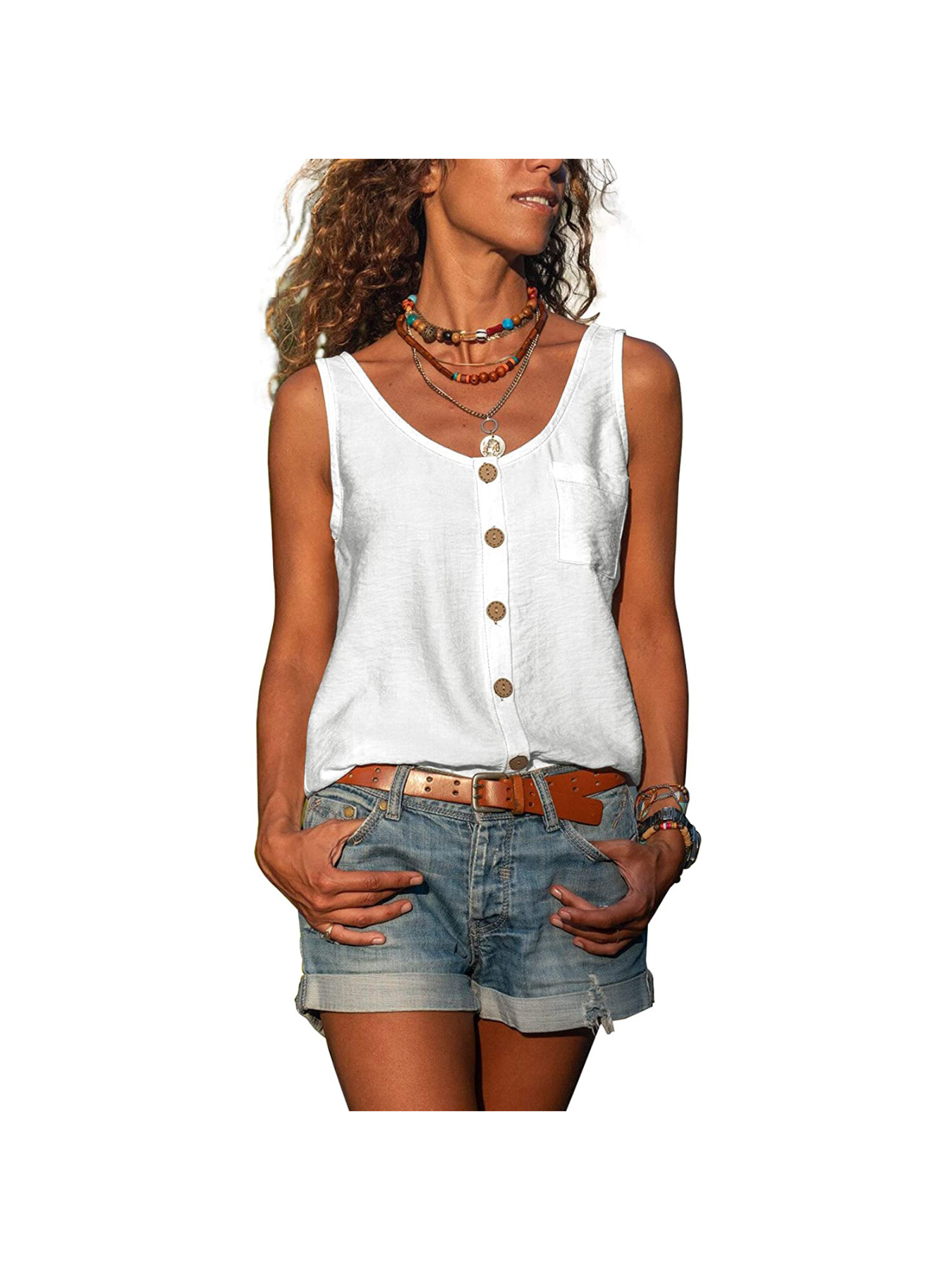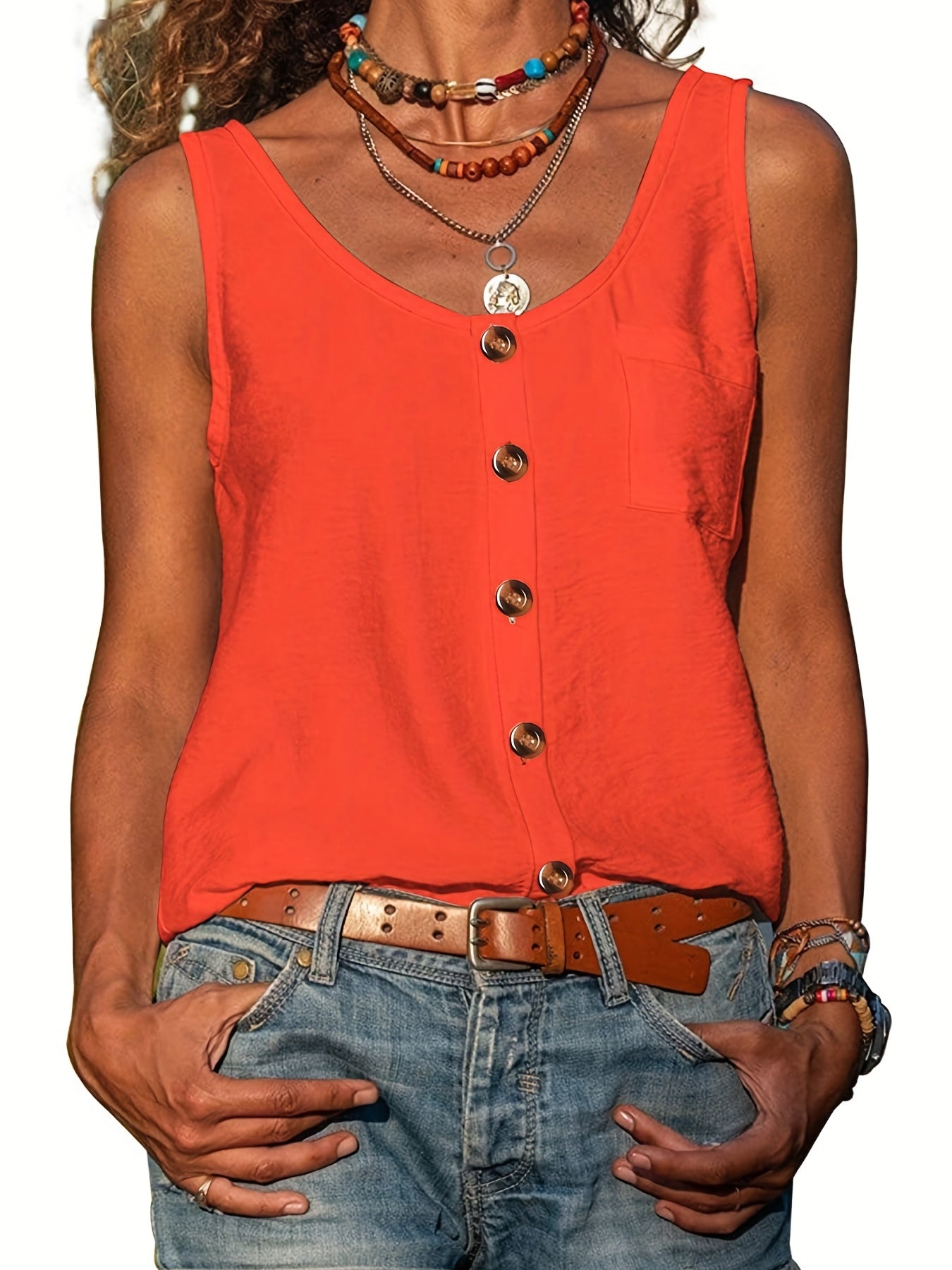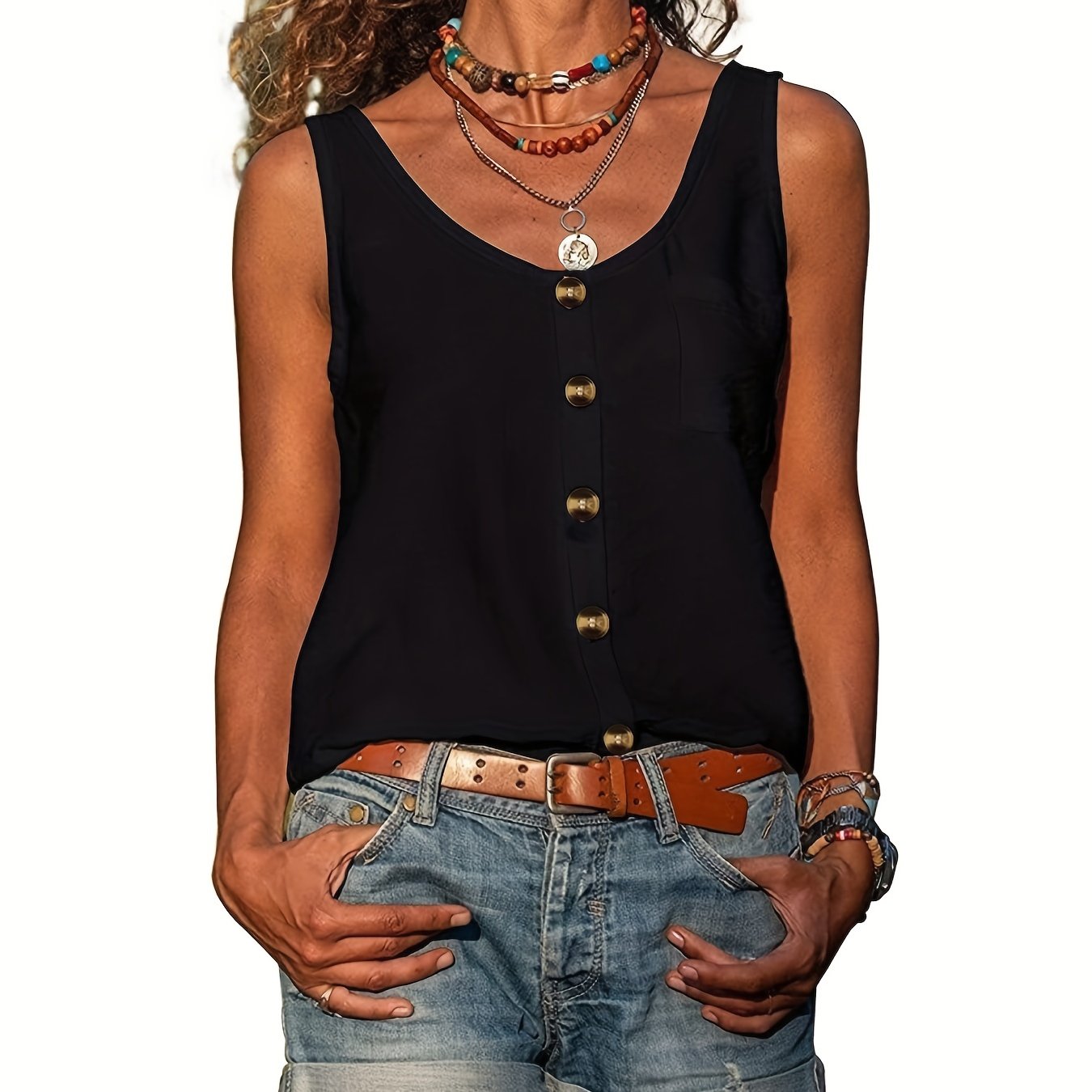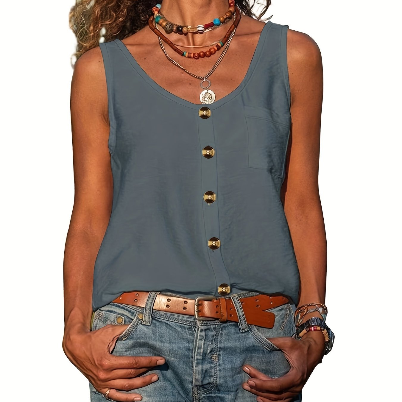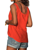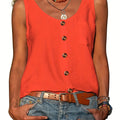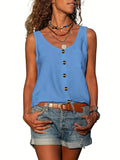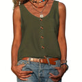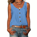 Sale Button Front Scoop Neck Tank Top, Casual Summer Sleeveless Solid Tank Top