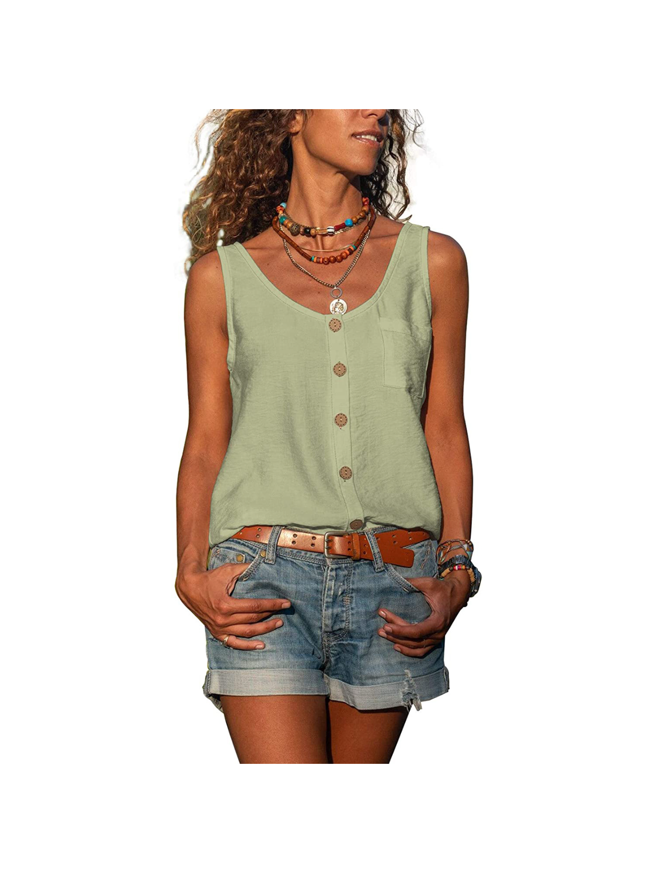 Sale Button-Front Lightweight Elegant Blouse-like Vest