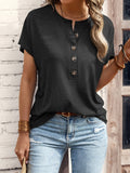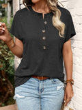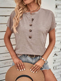 Sale Button Front Solid T-shirt, Casual Short Sleeve T-shirt