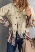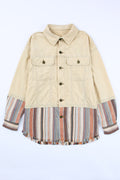 Button Up Pockets Striped Color Block Corduroy Jacket