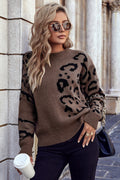 - The asymmetric leopard print makes this knit sweater unique and fashionable.The drop shoulder design gives a laid-back touch.The ribbed edge is elastic giving a structured comfy wearing.This bulk sweater is chunky and warm for cold weather.