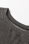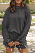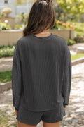 Sale Carbon Grey Corded Knit Long Sleeve Top and High Waist Shorts Set