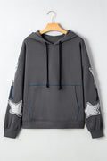 Carbon Grey Star Patchwork Contrast Stitching Mineral Wash Kangaroo Pocket Vintage Hoodie