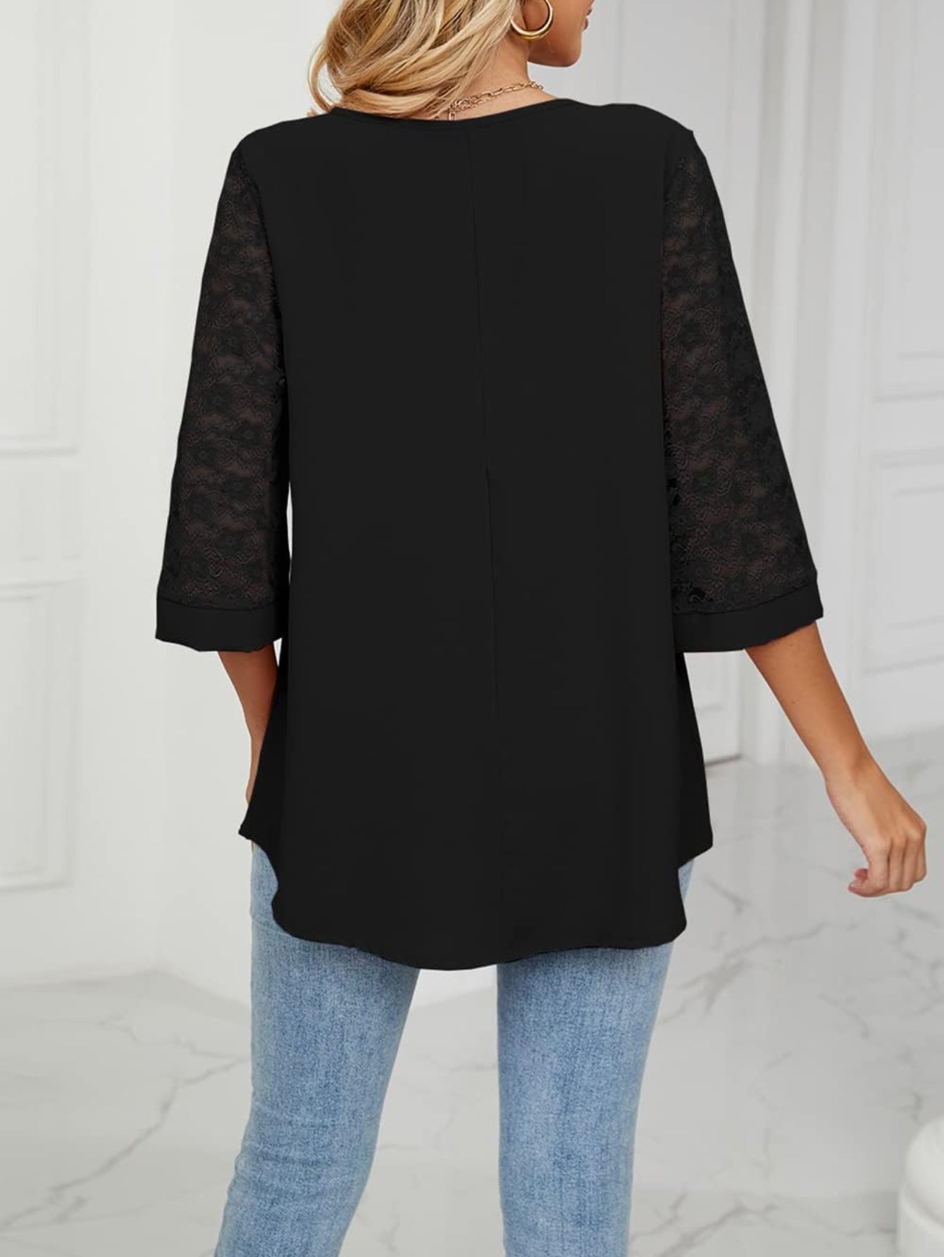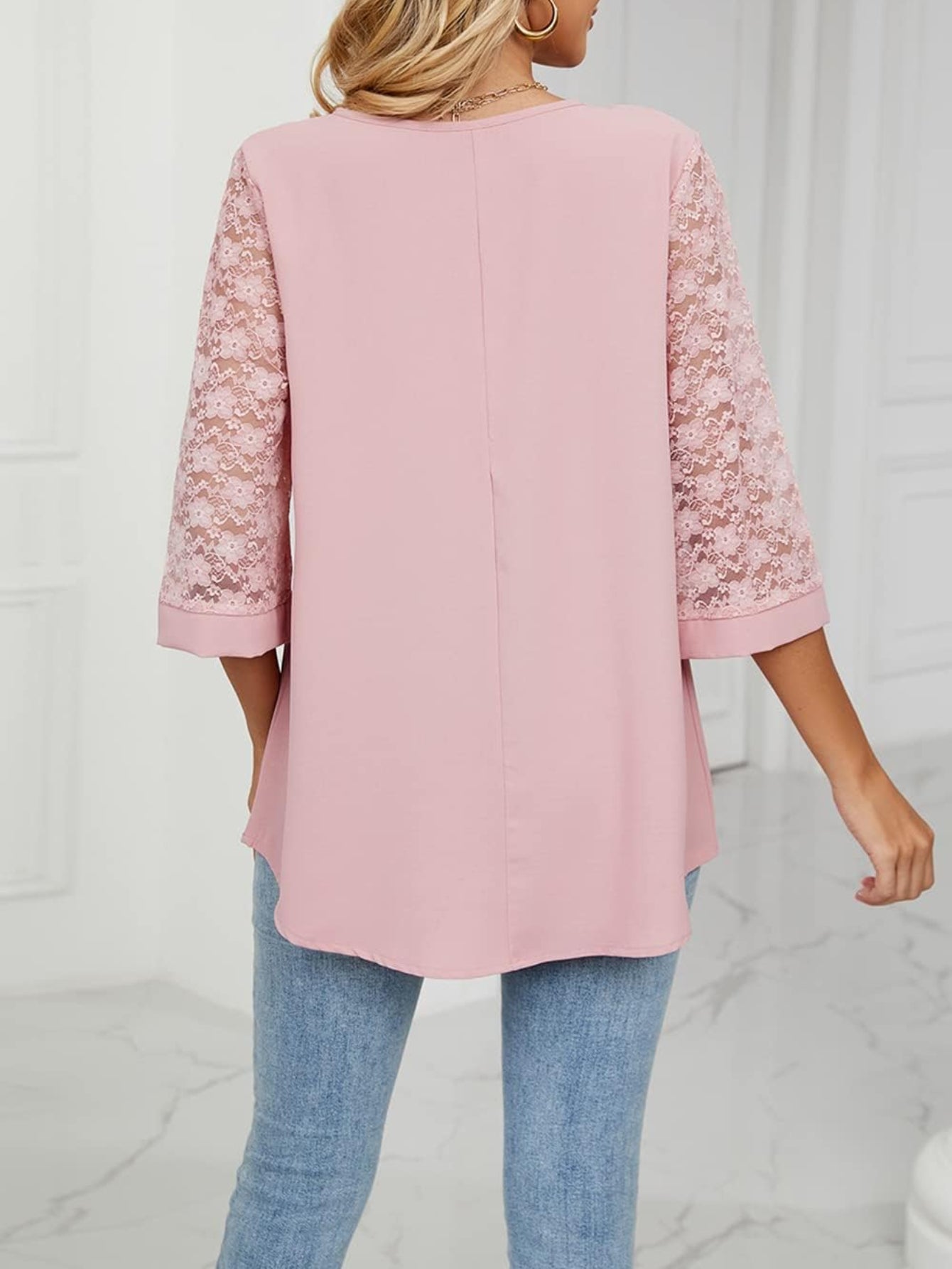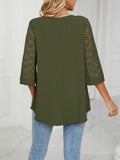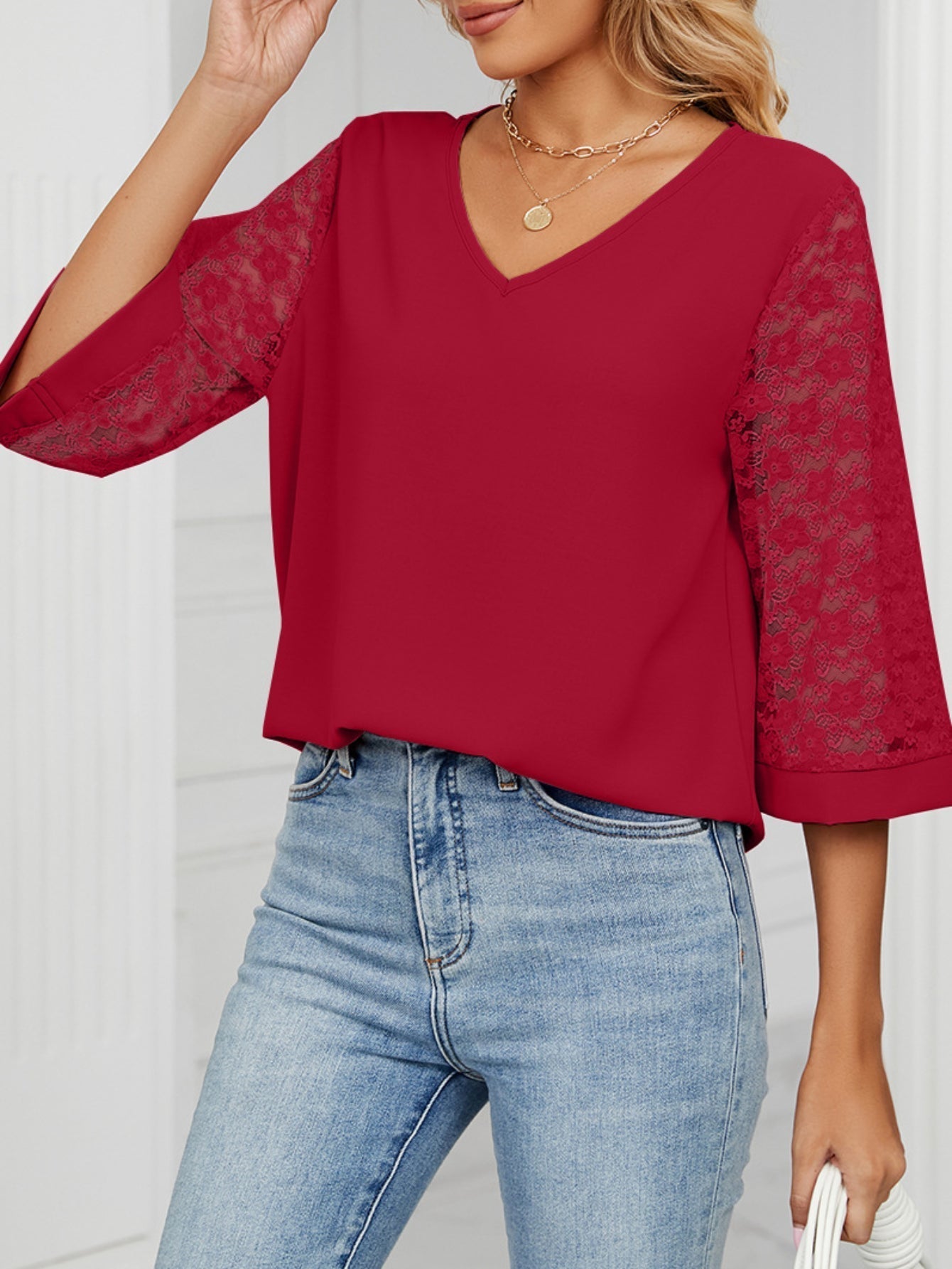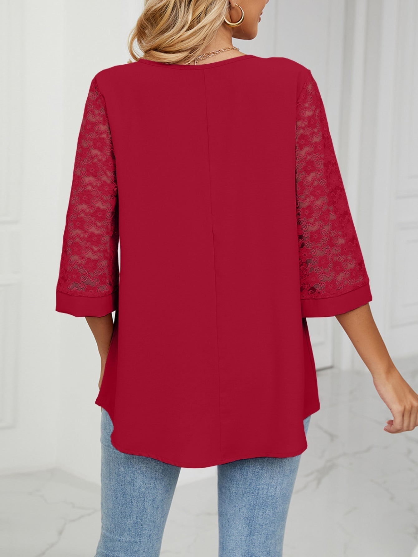 Casual 3/4 Sleeve Lace Chiffon Solid T-Shirt