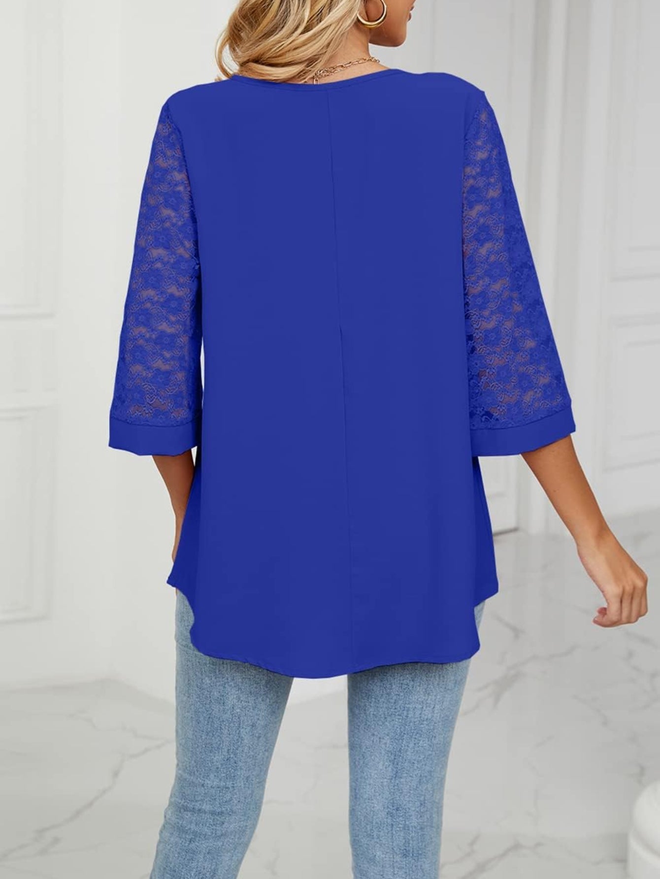Sale Casual 3/4 Sleeve Lace Chiffon Solid T-Shirt