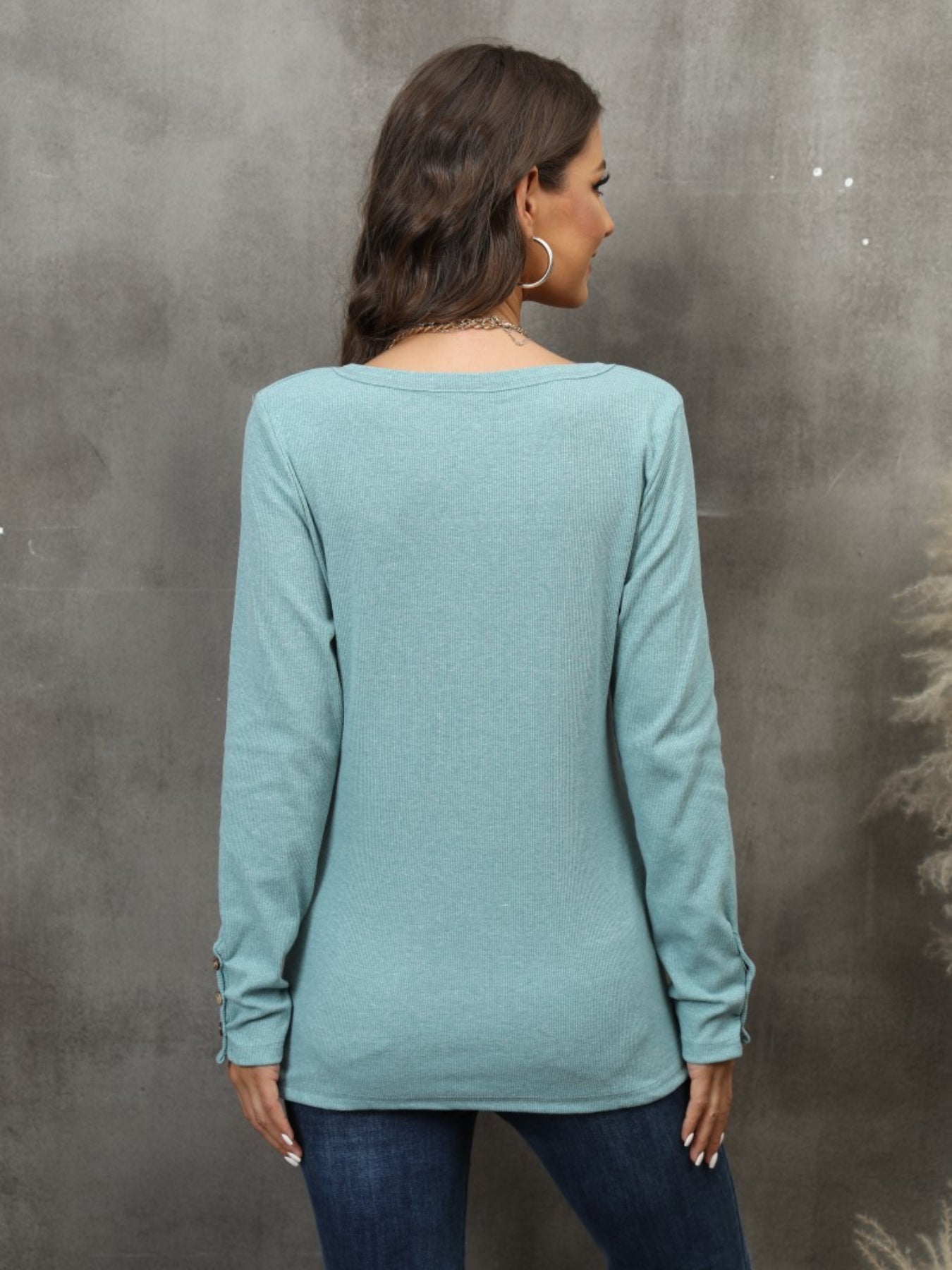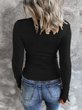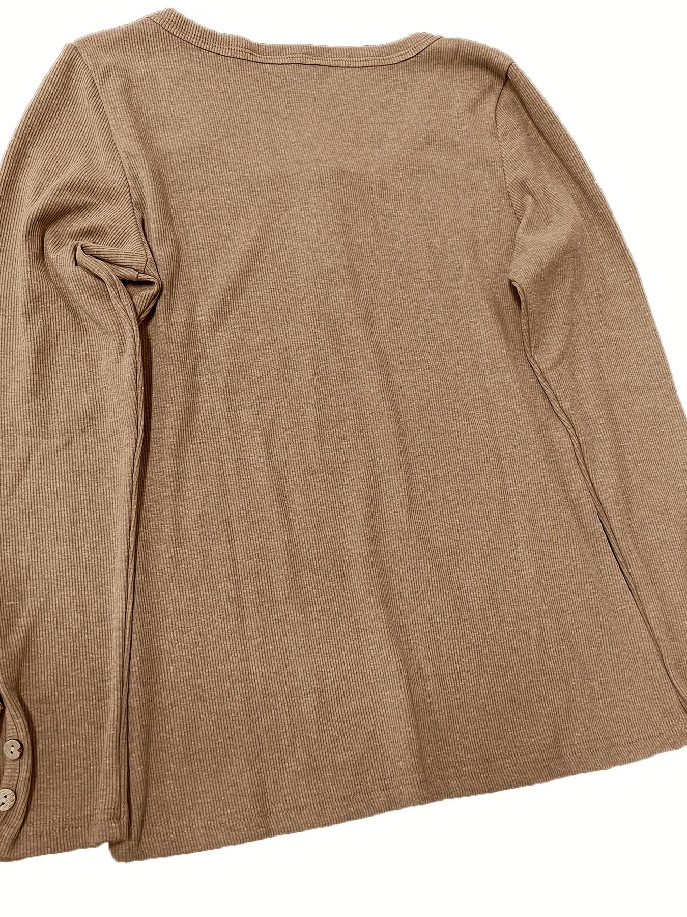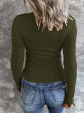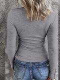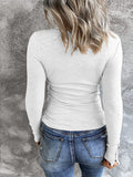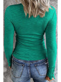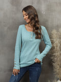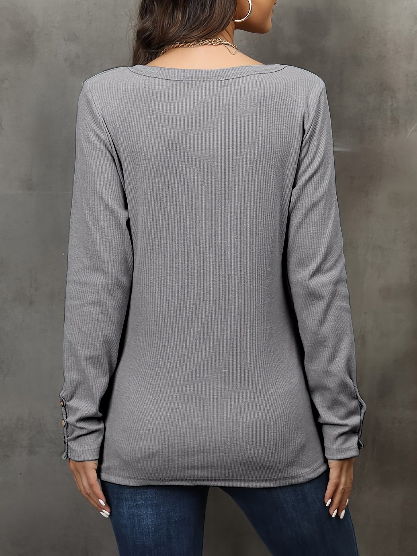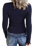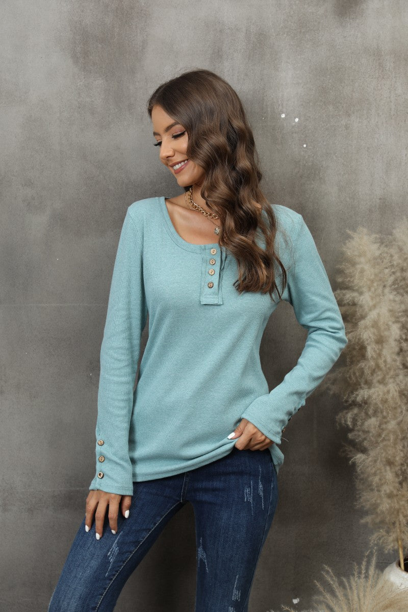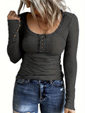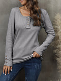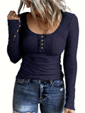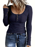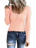 Casual Button Scoop Neck T-shirt, Loose Long Sleeve Slim Fit Fashion T-Shirts Tops