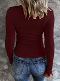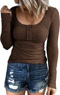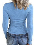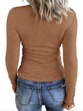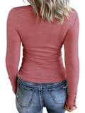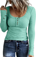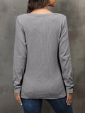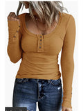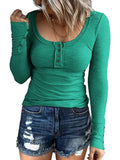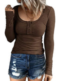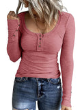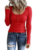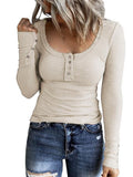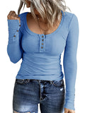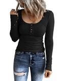 Sale Casual Button Scoop Neck T-shirt, Loose Long Sleeve Slim Fit Fashion T-Shirts Tops