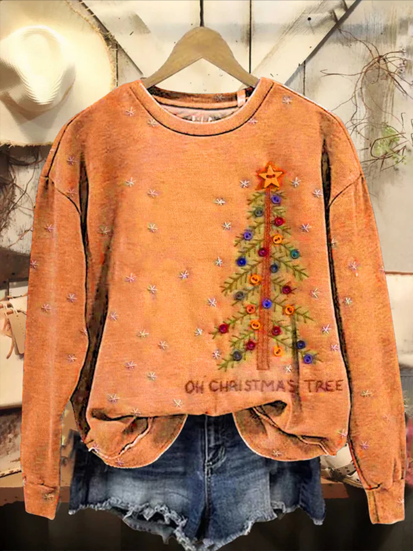 Christmas Printing Crew Neck Floral Long Sleeve Comfy Casual Sweater Hoodie