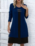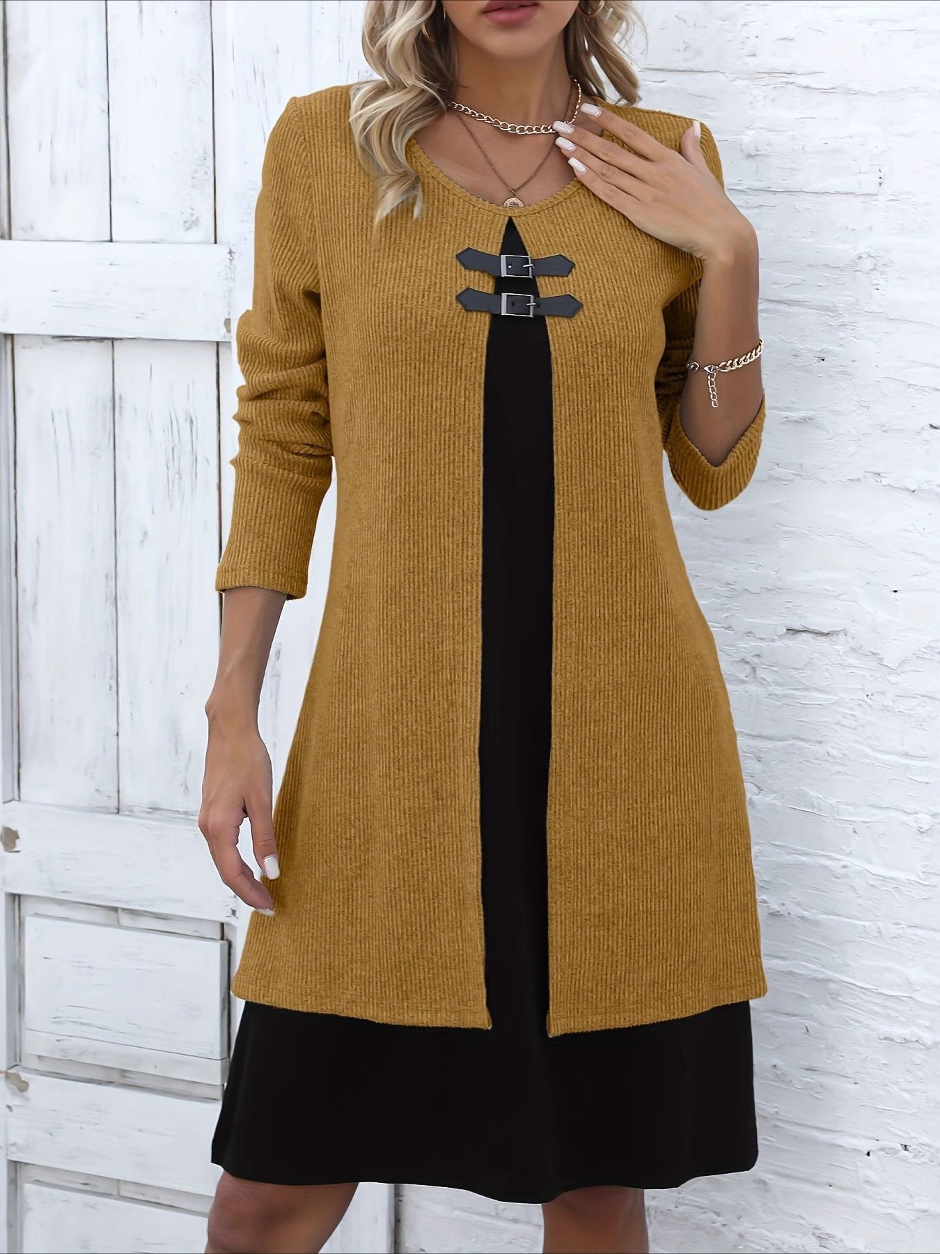 Long Sleeve Spring/Fall Golden Plain Split Joint Mini A-Line Fit & Flare Dress