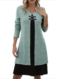 Sale Elegant Leopard Print Panel Long Sleeve Dress - Crew Neck, Stretchy Polyester Blend