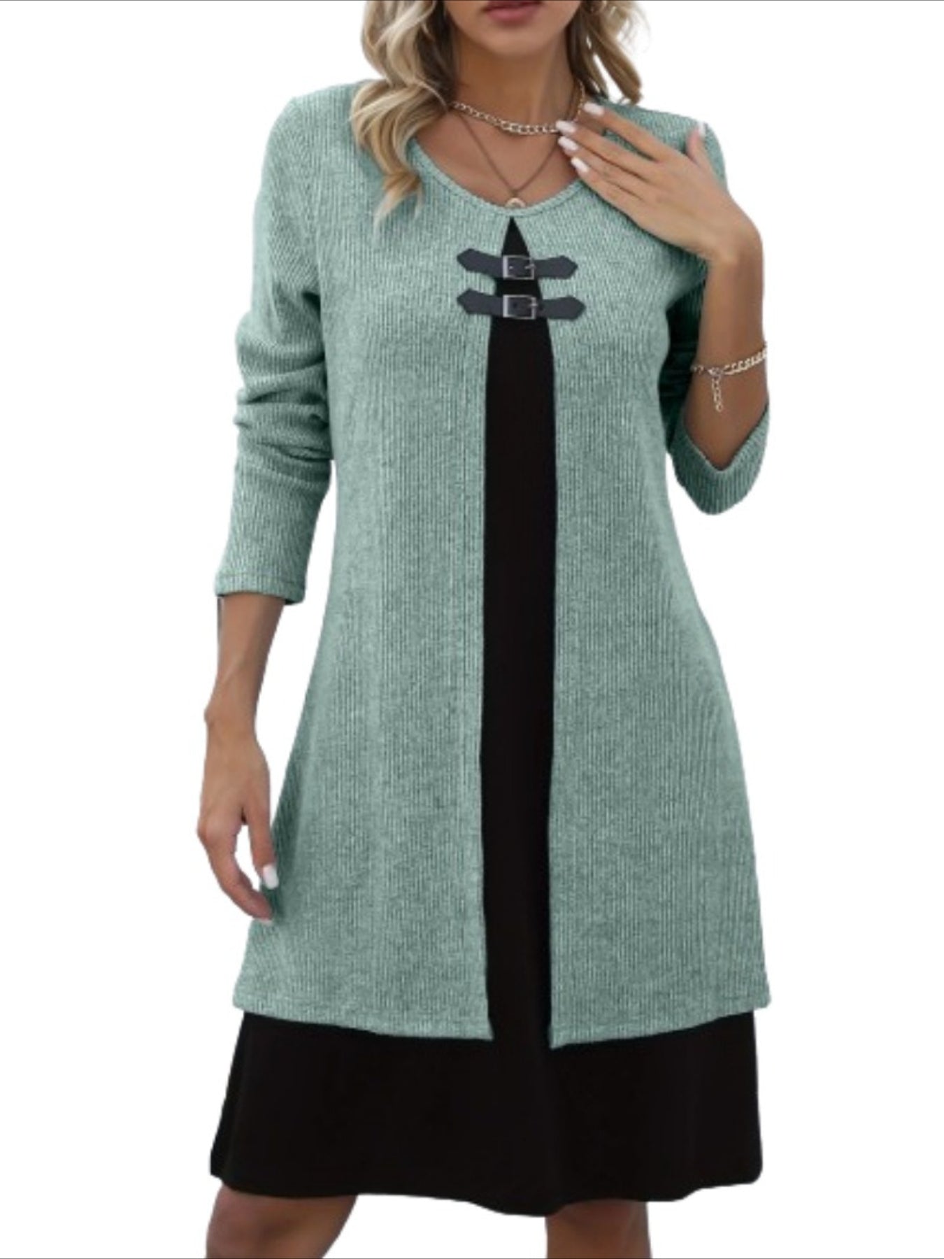 Sale Long Sleeve Crew Neck Daily Going Out Casual Midi H-Line Dress