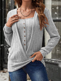 Casual Criss Cross Neck Long Sleeve T-Shirt