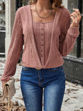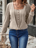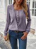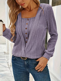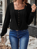 Sale Striped Botton Crew Neck T-Shirt, Elegant Long Sleeve T-Shirt