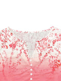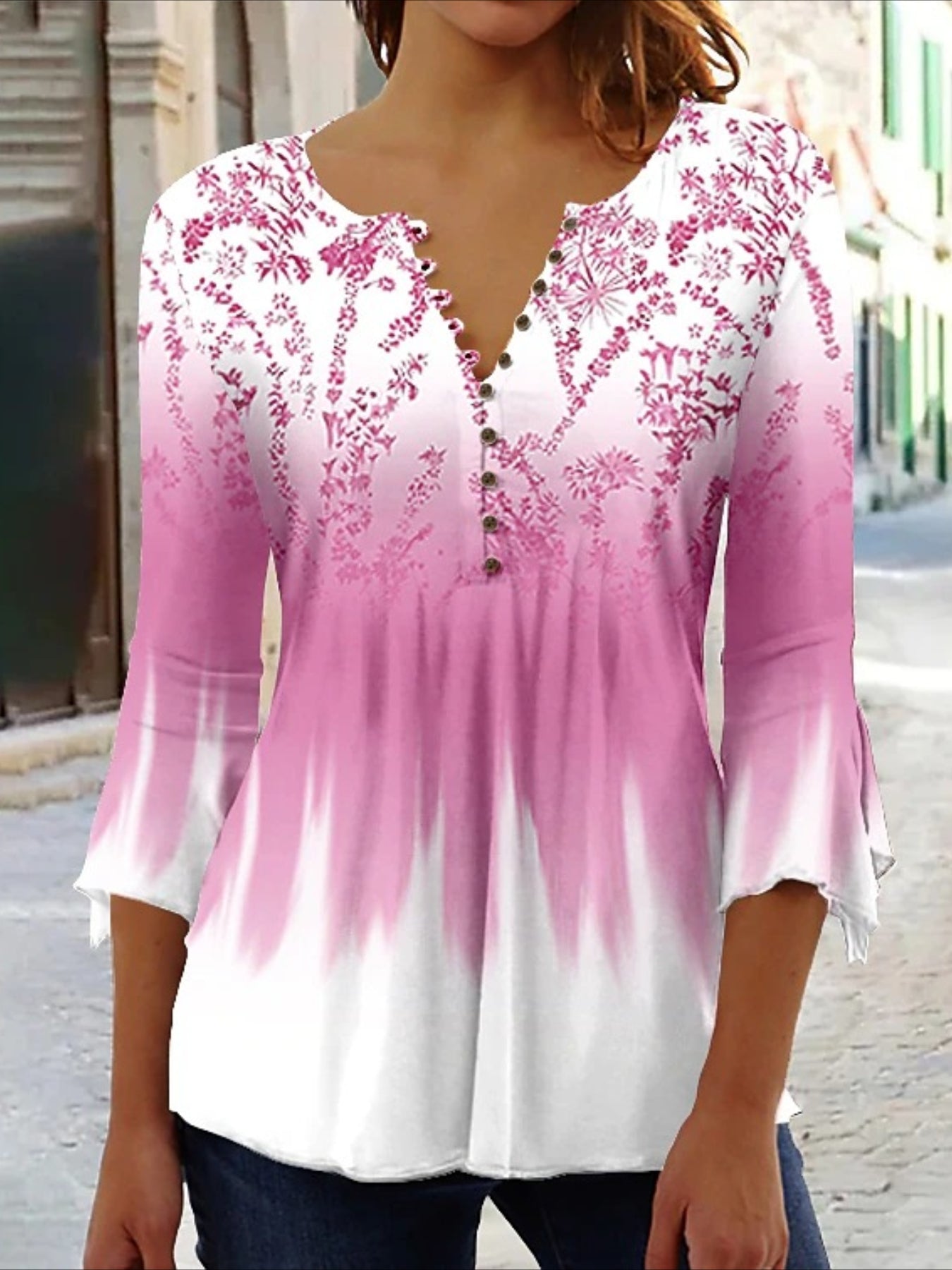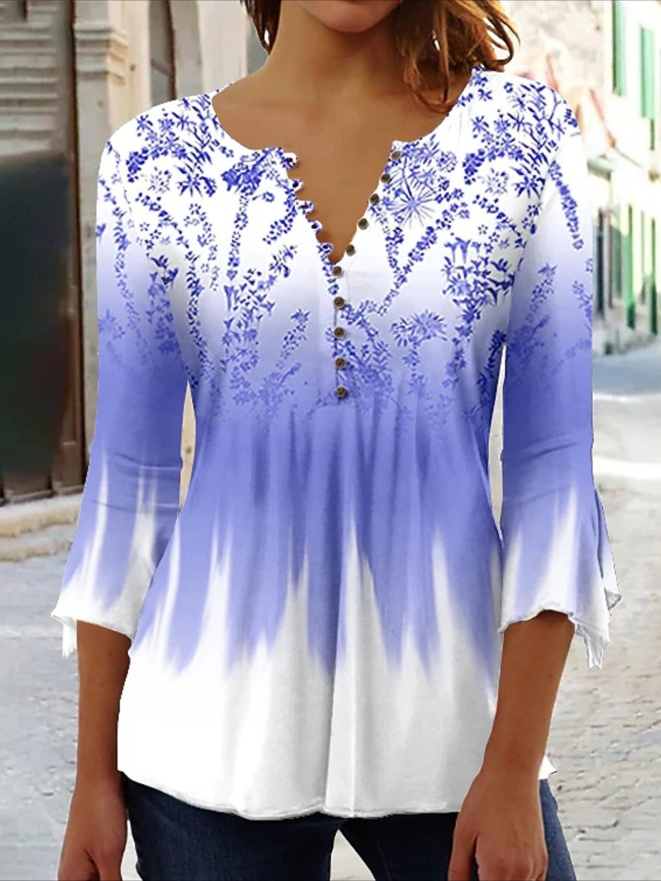 Casual Floral Print V-Neck 3/4 Sleeves Blouse