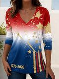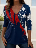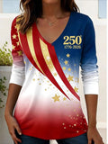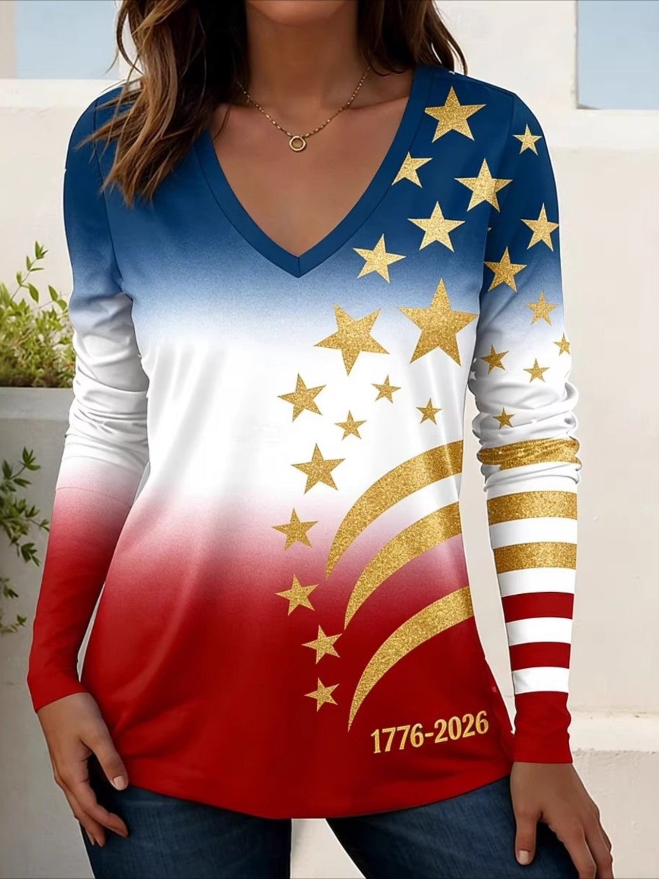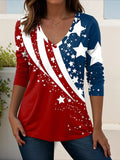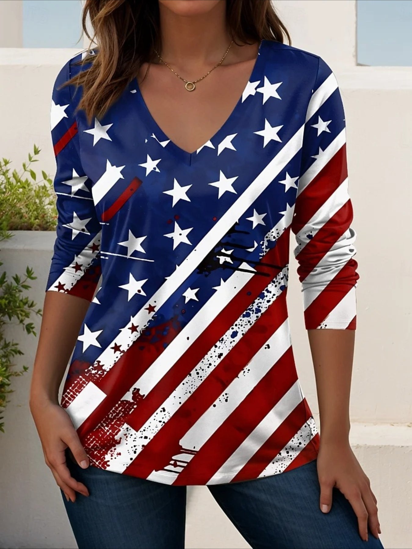 Casual Independence Day (Flag) V Neck Long Sleeve T-shirt