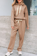 Casual Lace Drawstring Pullover Hoodie and High Waist Pants Corduroy Suit