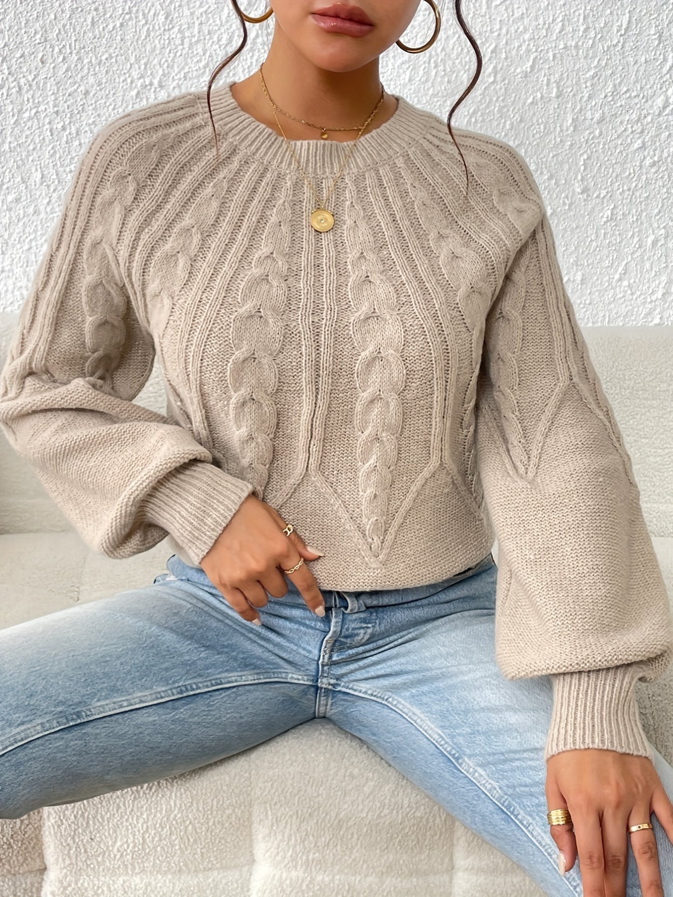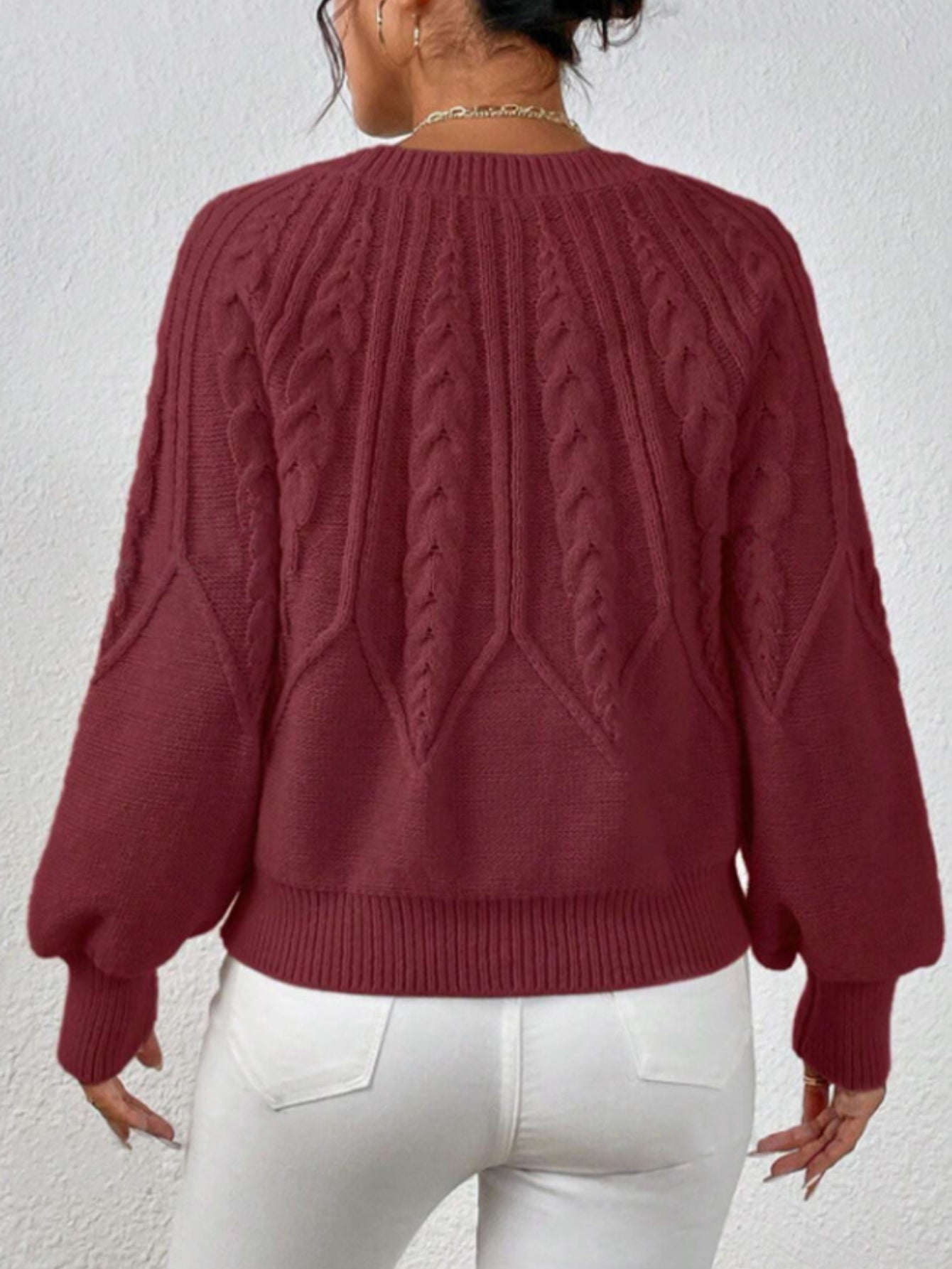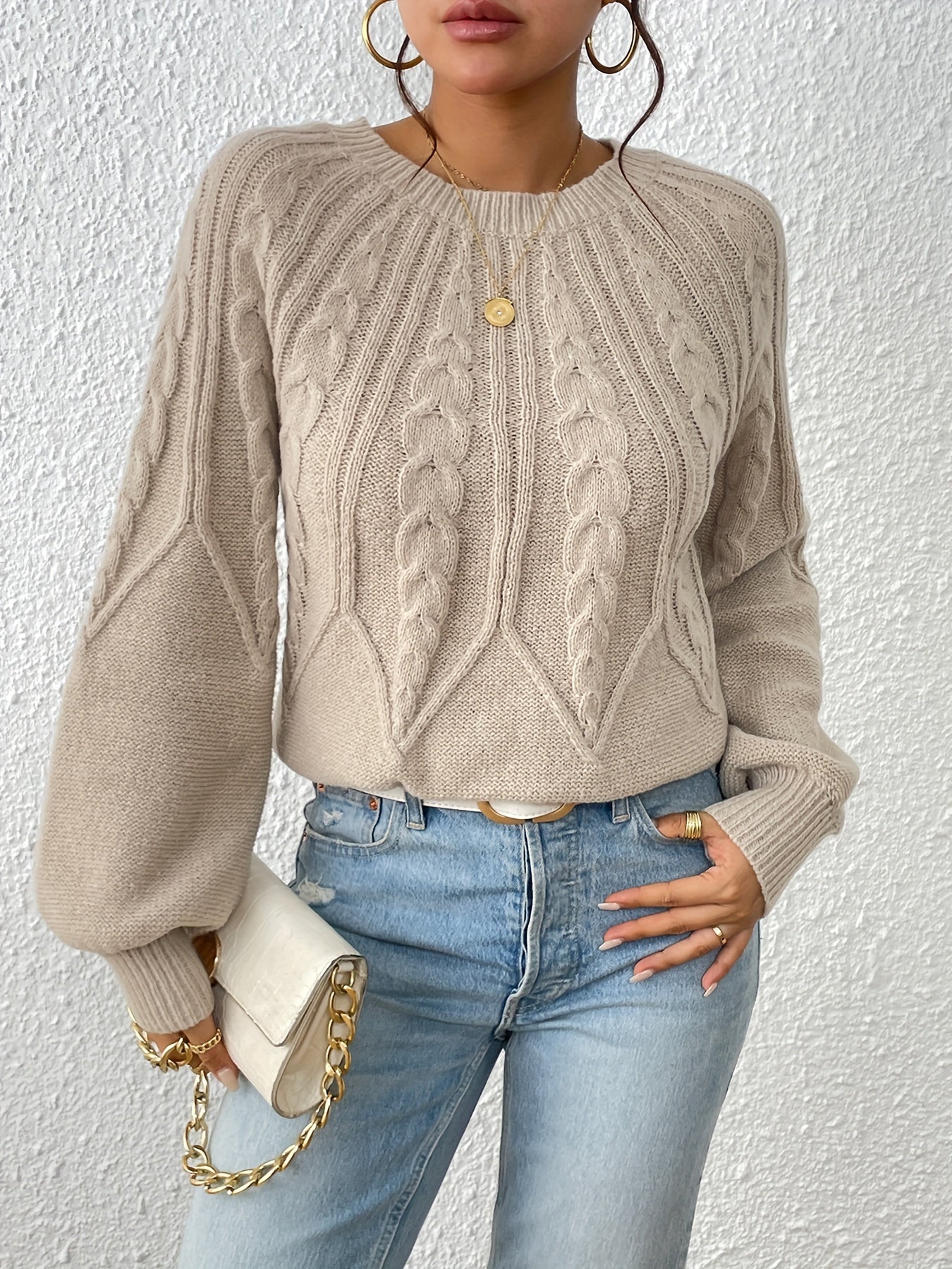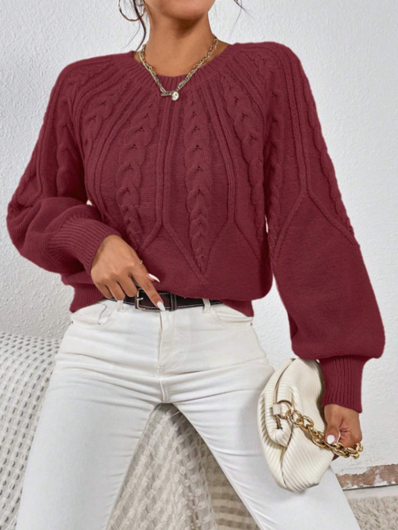 Middle Eastern Style Long Sleeve Solid Color Crew Neck Pullover Sweater