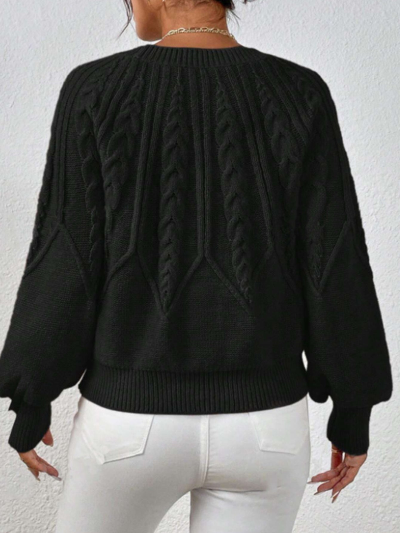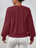 Casual Pullover Chic Knit Lantern Sleeves & Ruffle Detail Sweater
