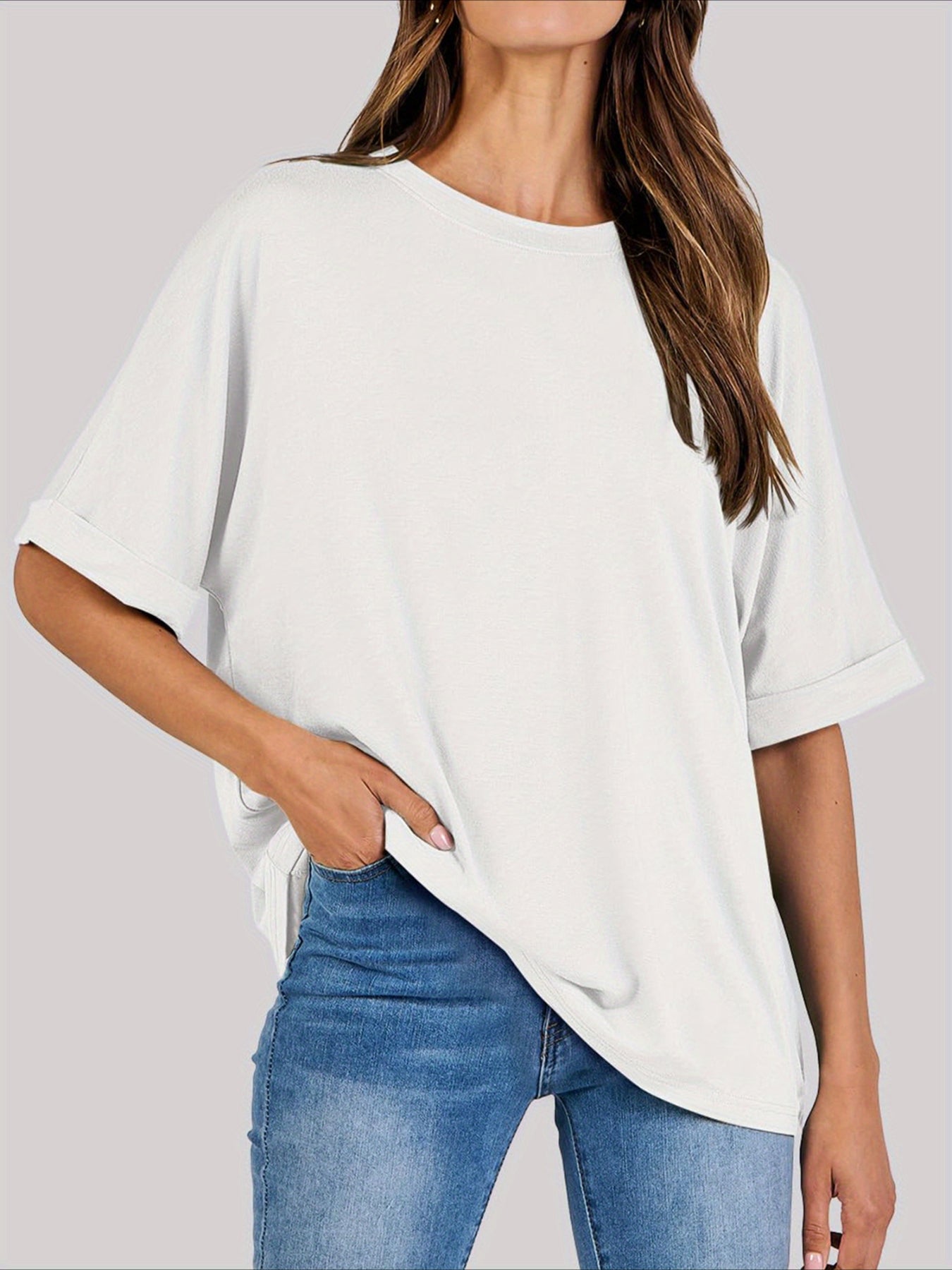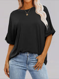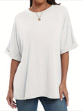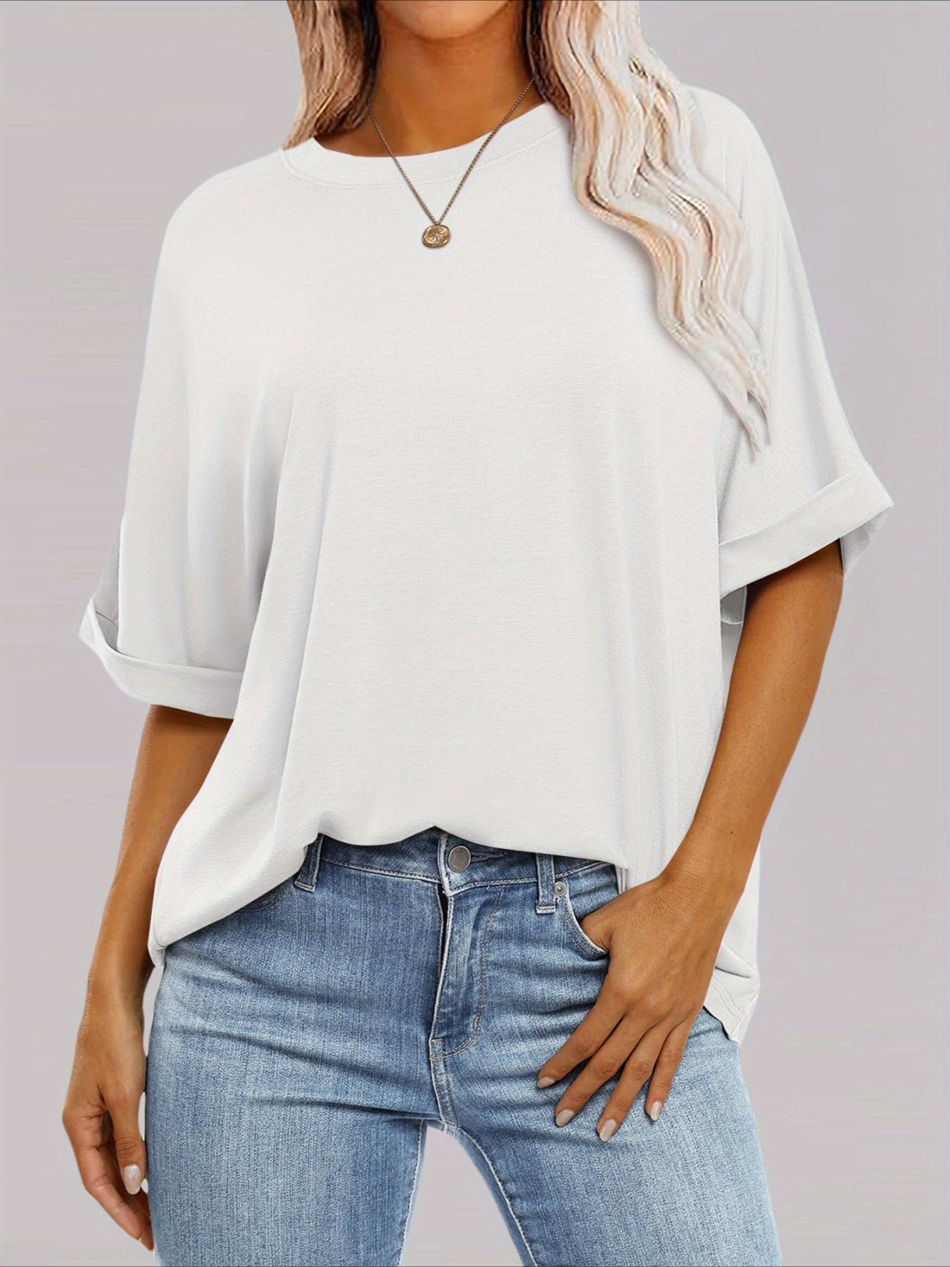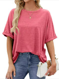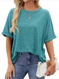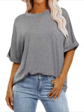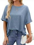 Casual Short Sleeve Crewneck Solid Color Loose T-Shirt