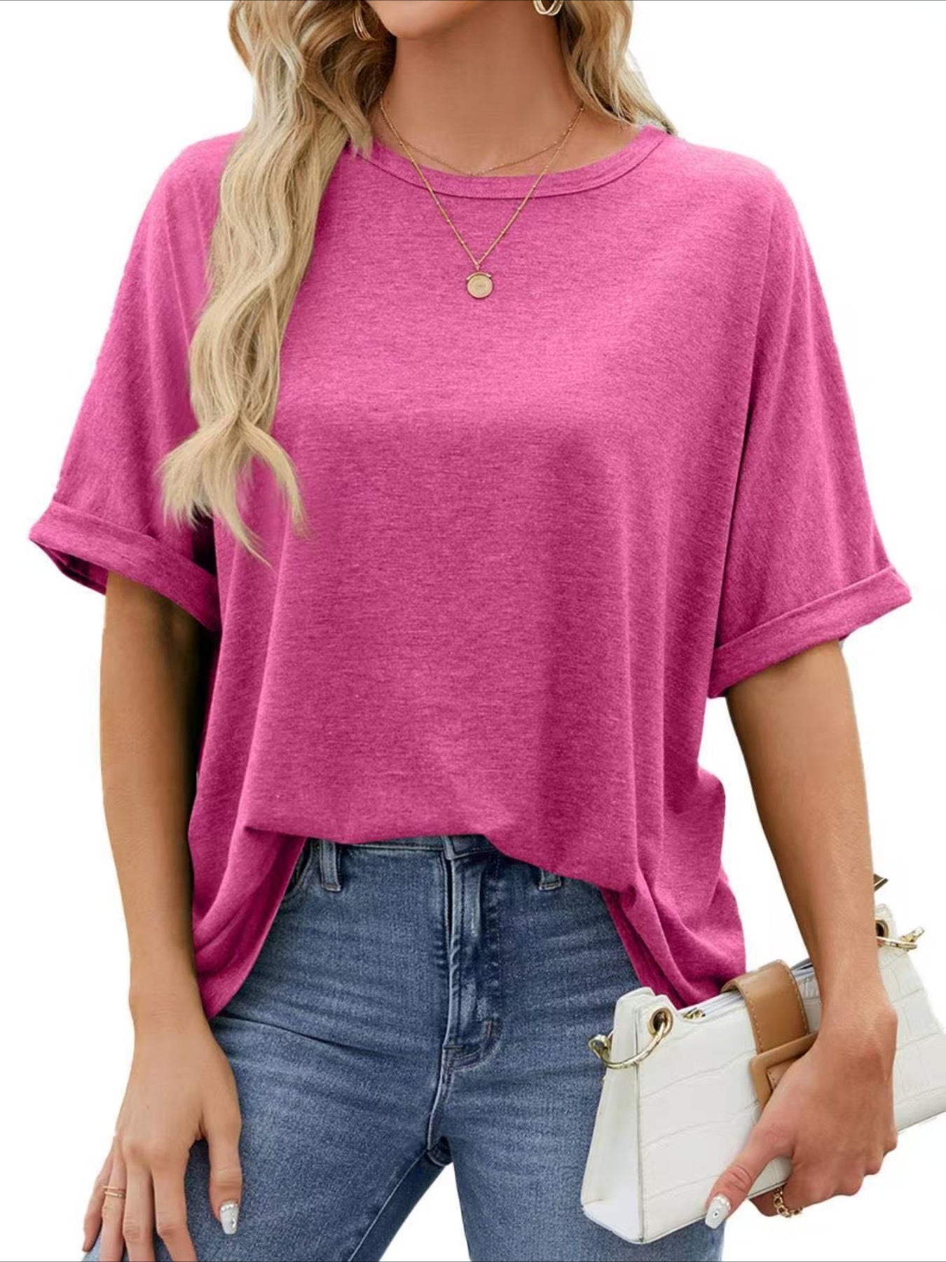 Sale Casual Short Sleeve Crewneck Solid Color Loose T-Shirt