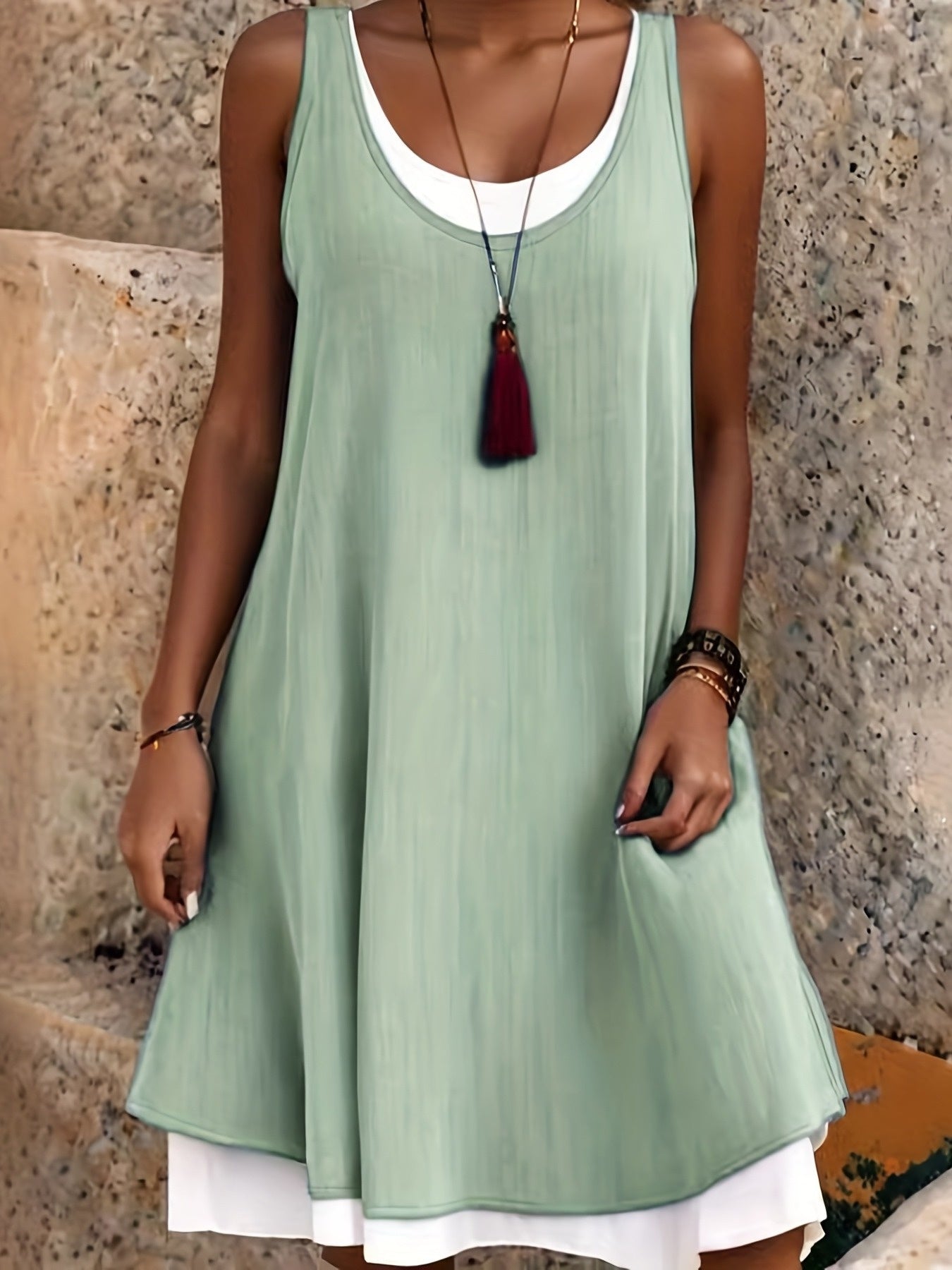 Casual Sleeveless Fake Two-Piece Loose Vest Dress