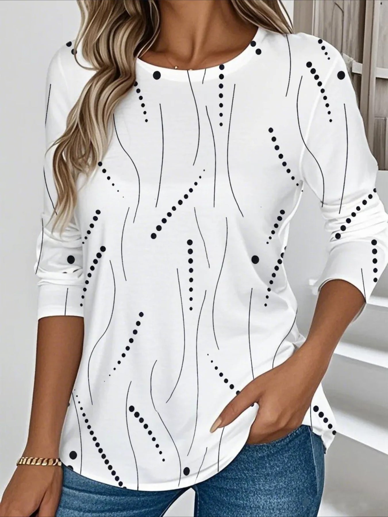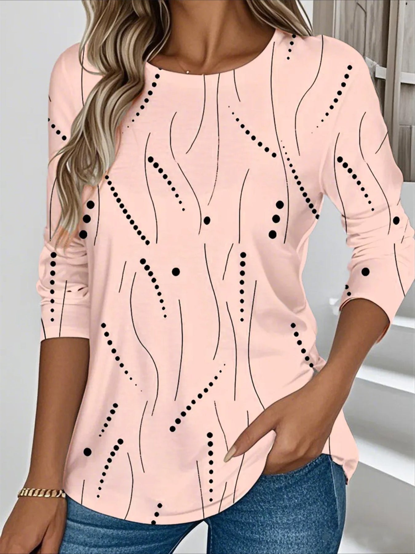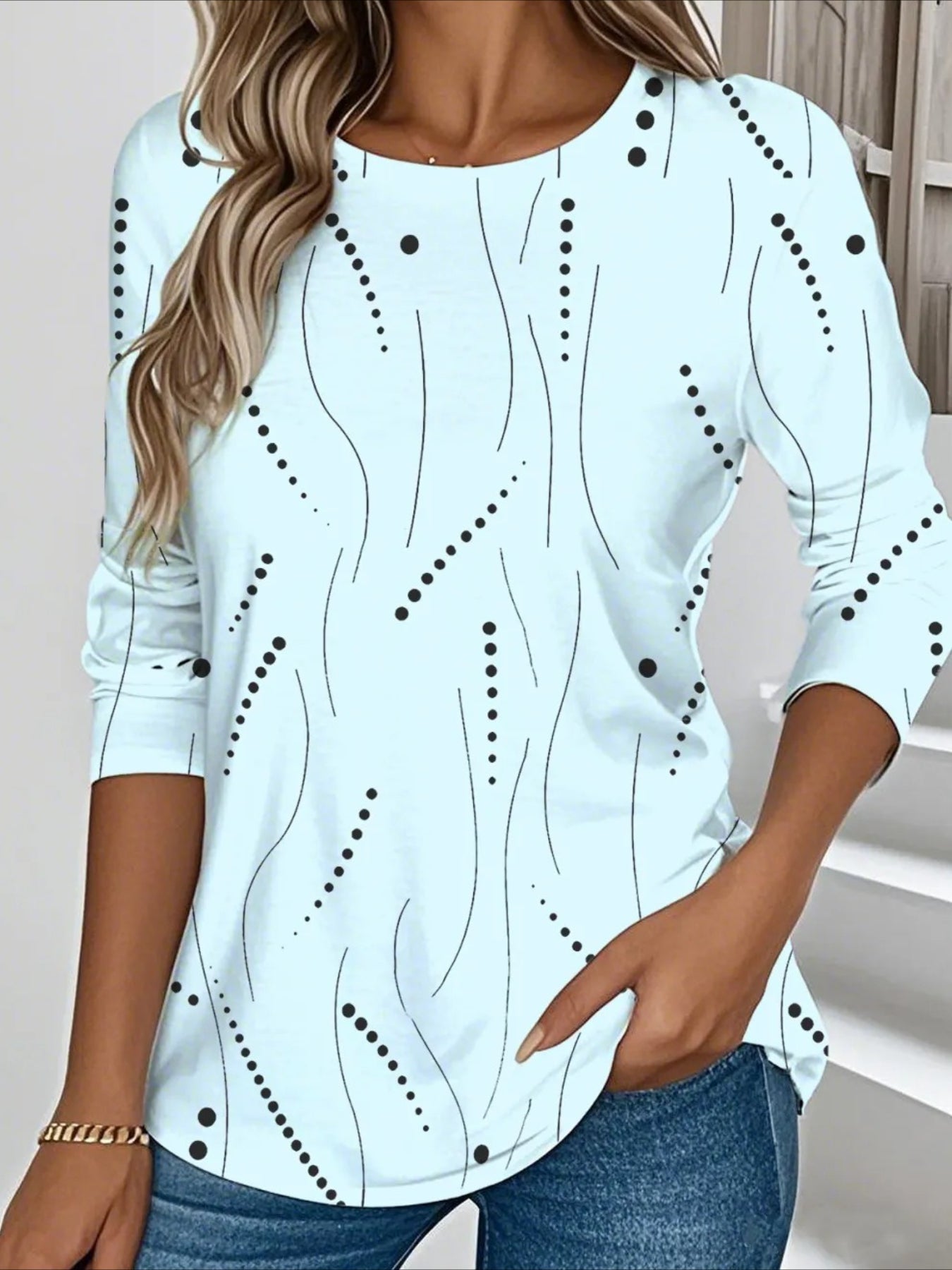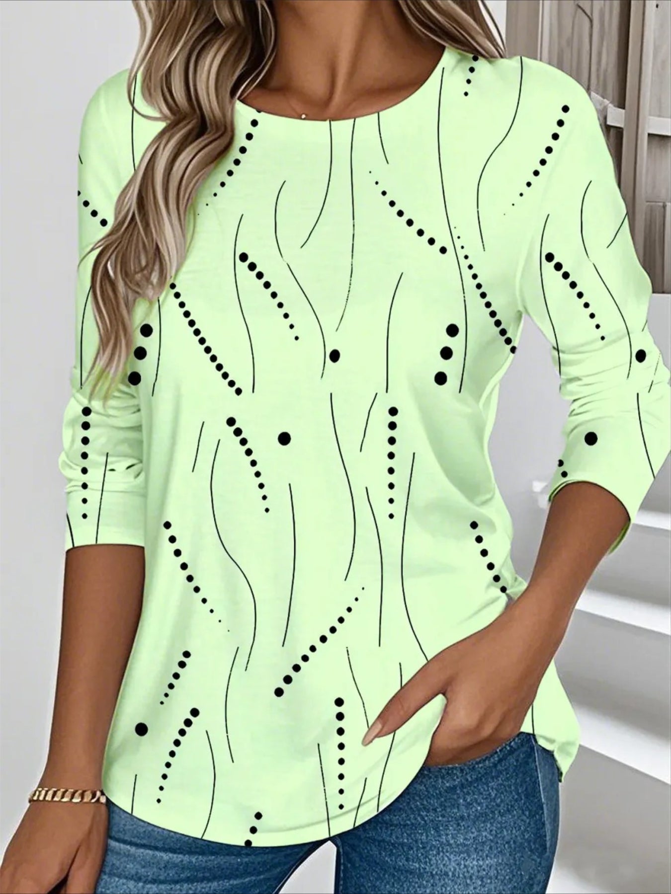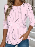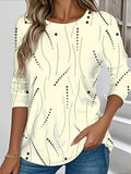 Sale Graphic Geometric Striped Elegant Vintage Fashion Long Sleeve Crew Neck Regular Tops