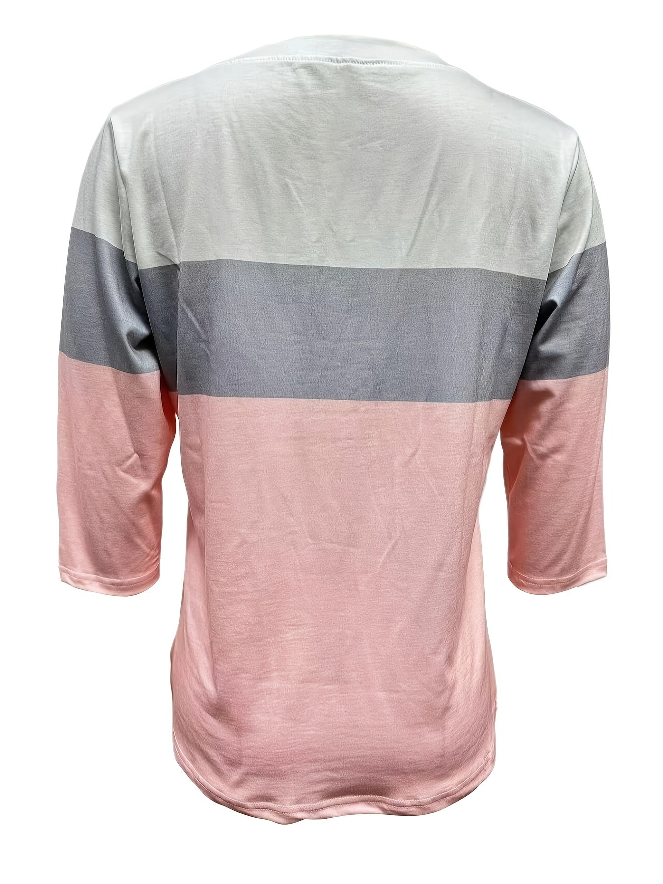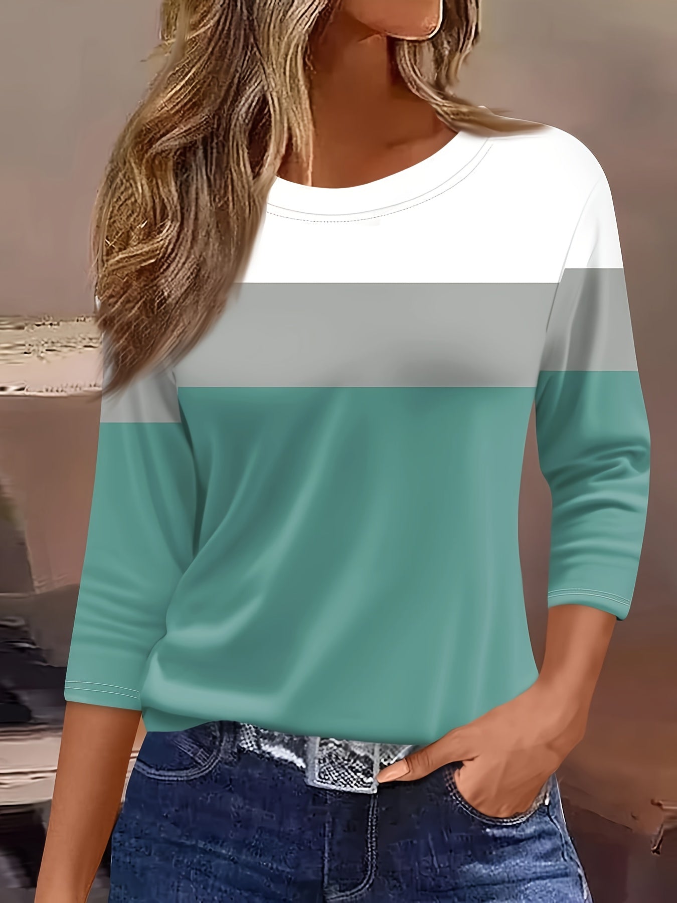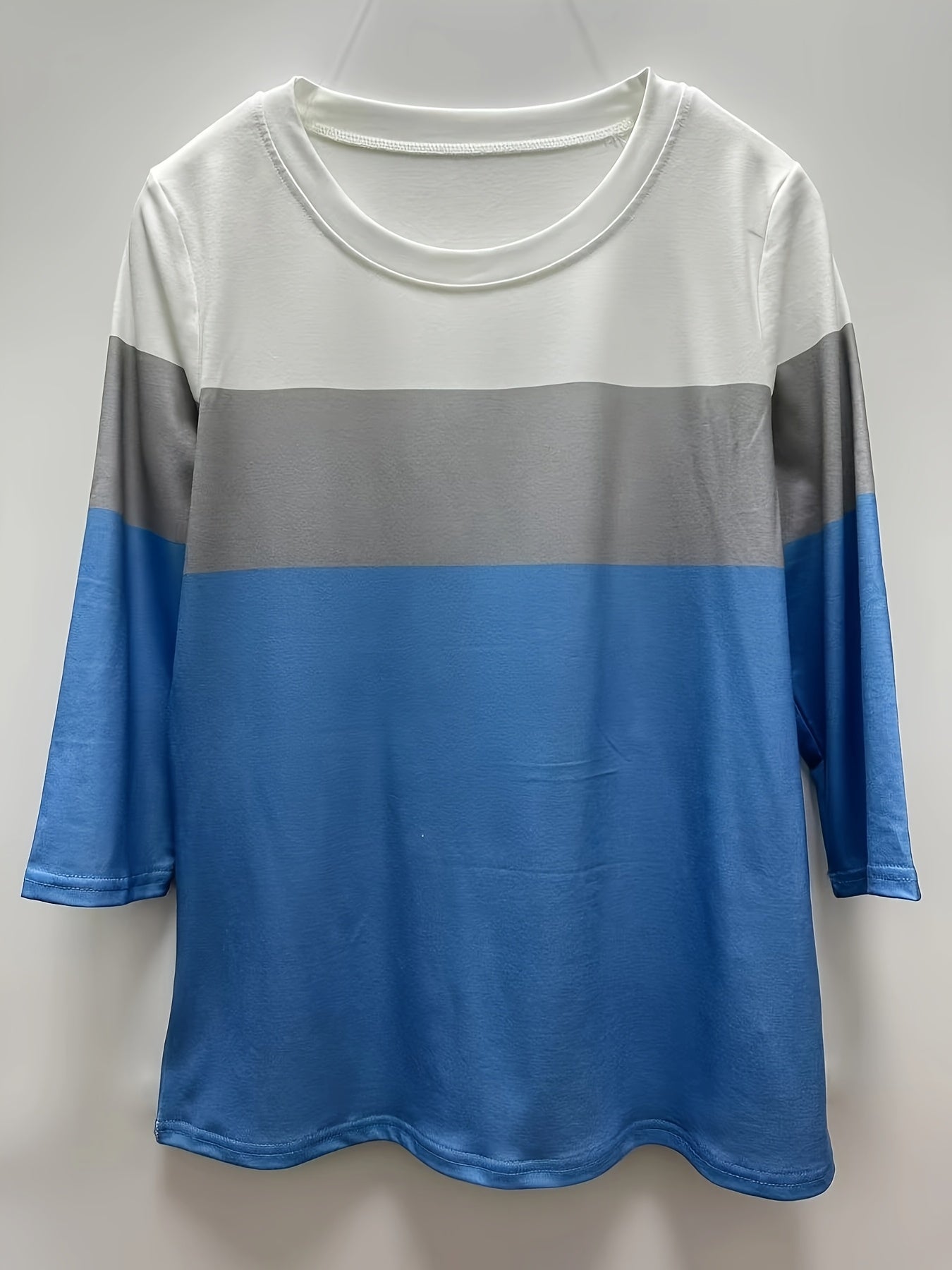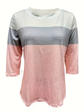 Sale Color Block Crew Neck T-shirt, Casual Long Sleeve Top