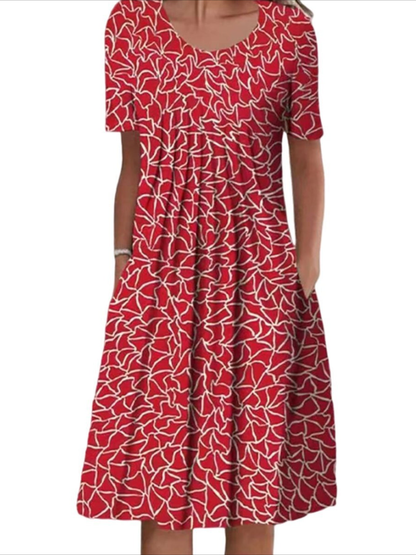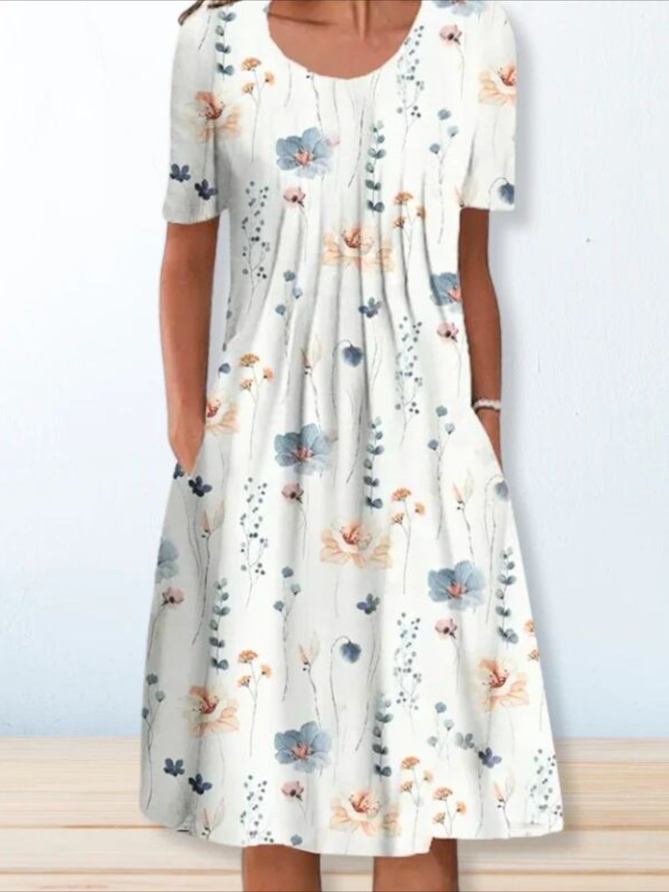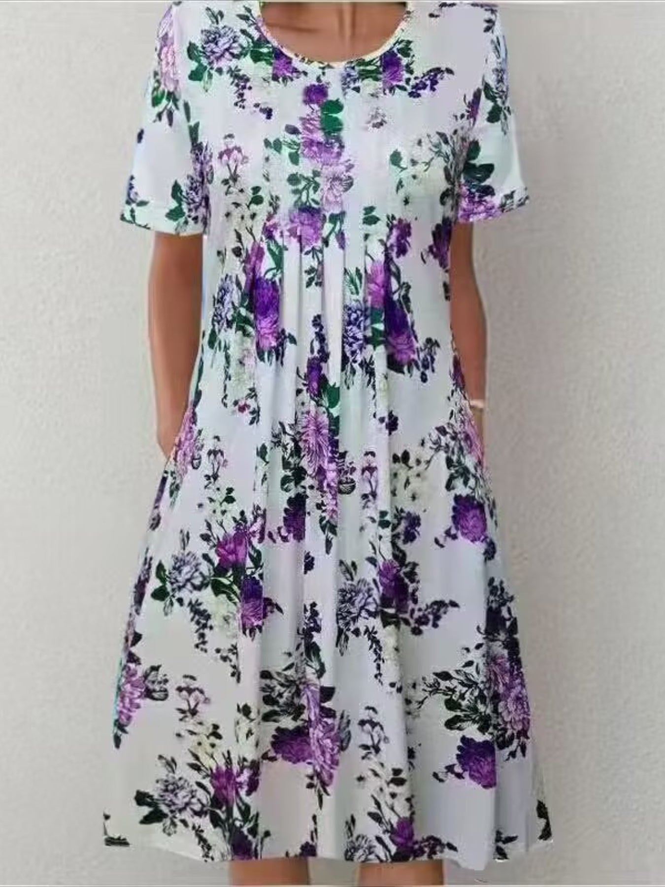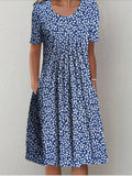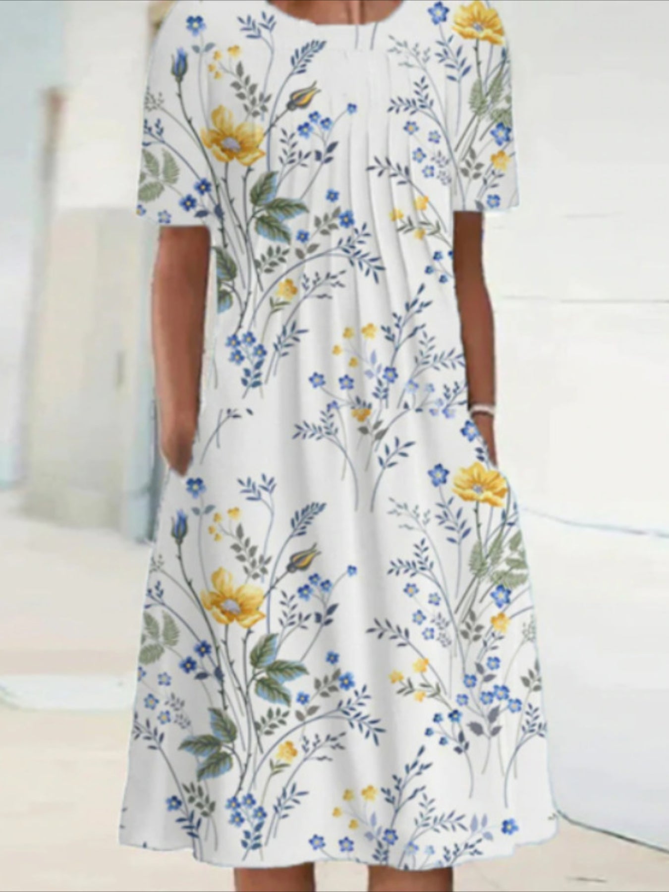 Sale Casual Vacation Commute Floral Print Round Neck Short Sleeve Dress