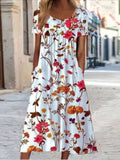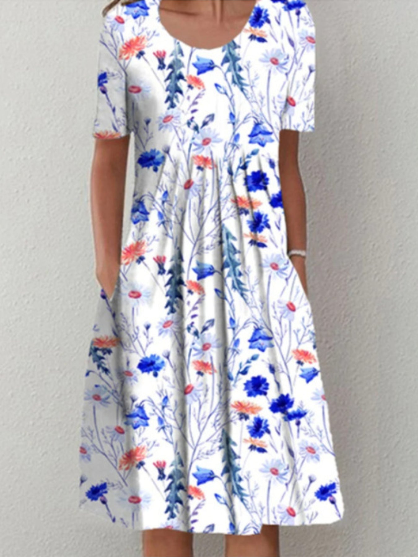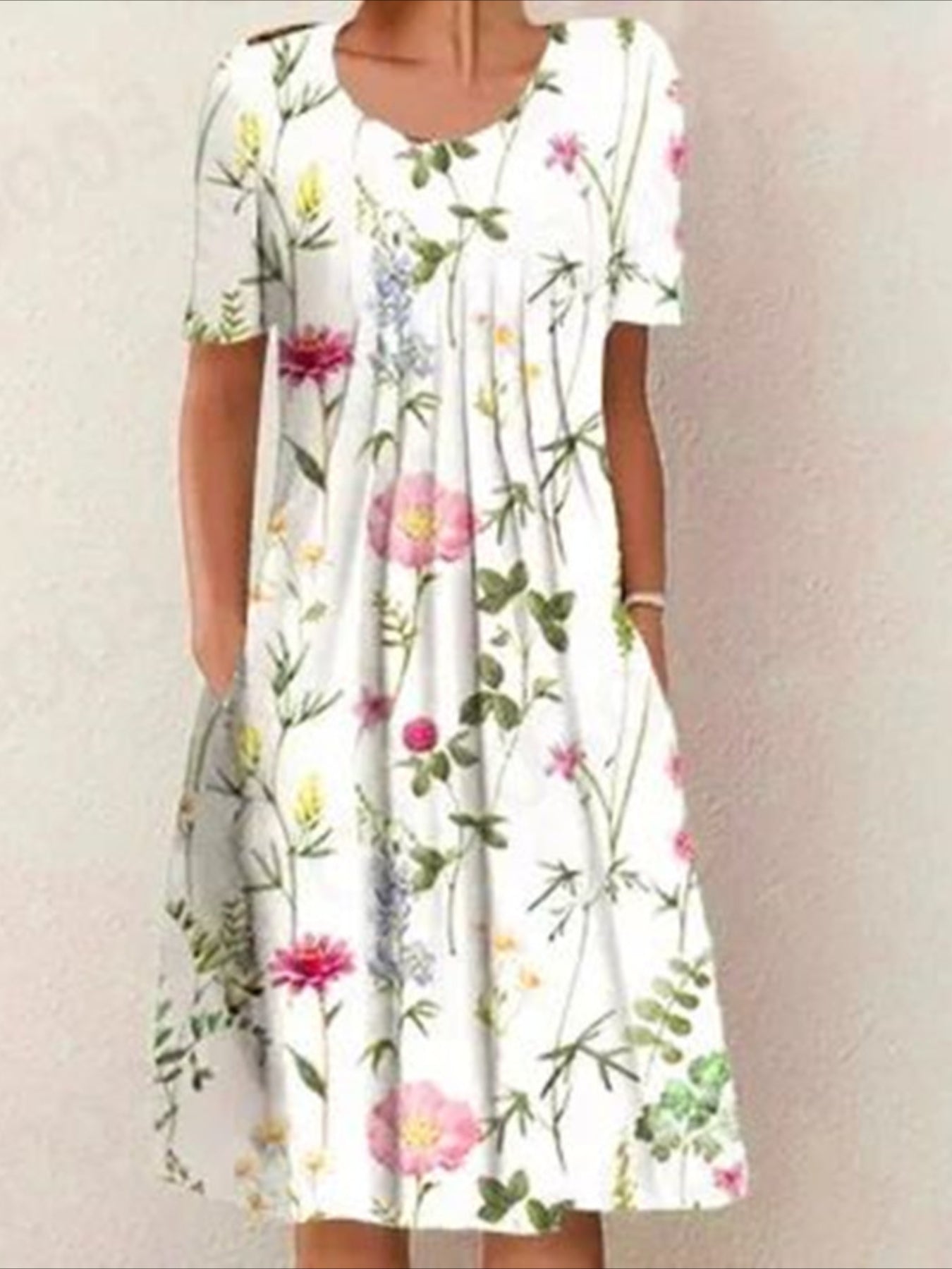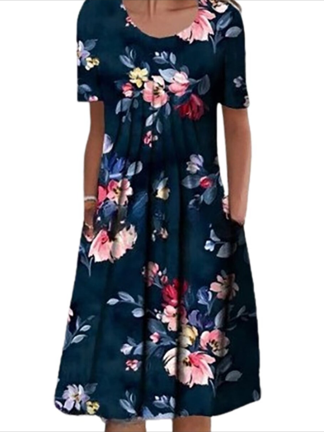 Casual Vacation Commute Floral Print Round Neck Short Sleeve Dress
