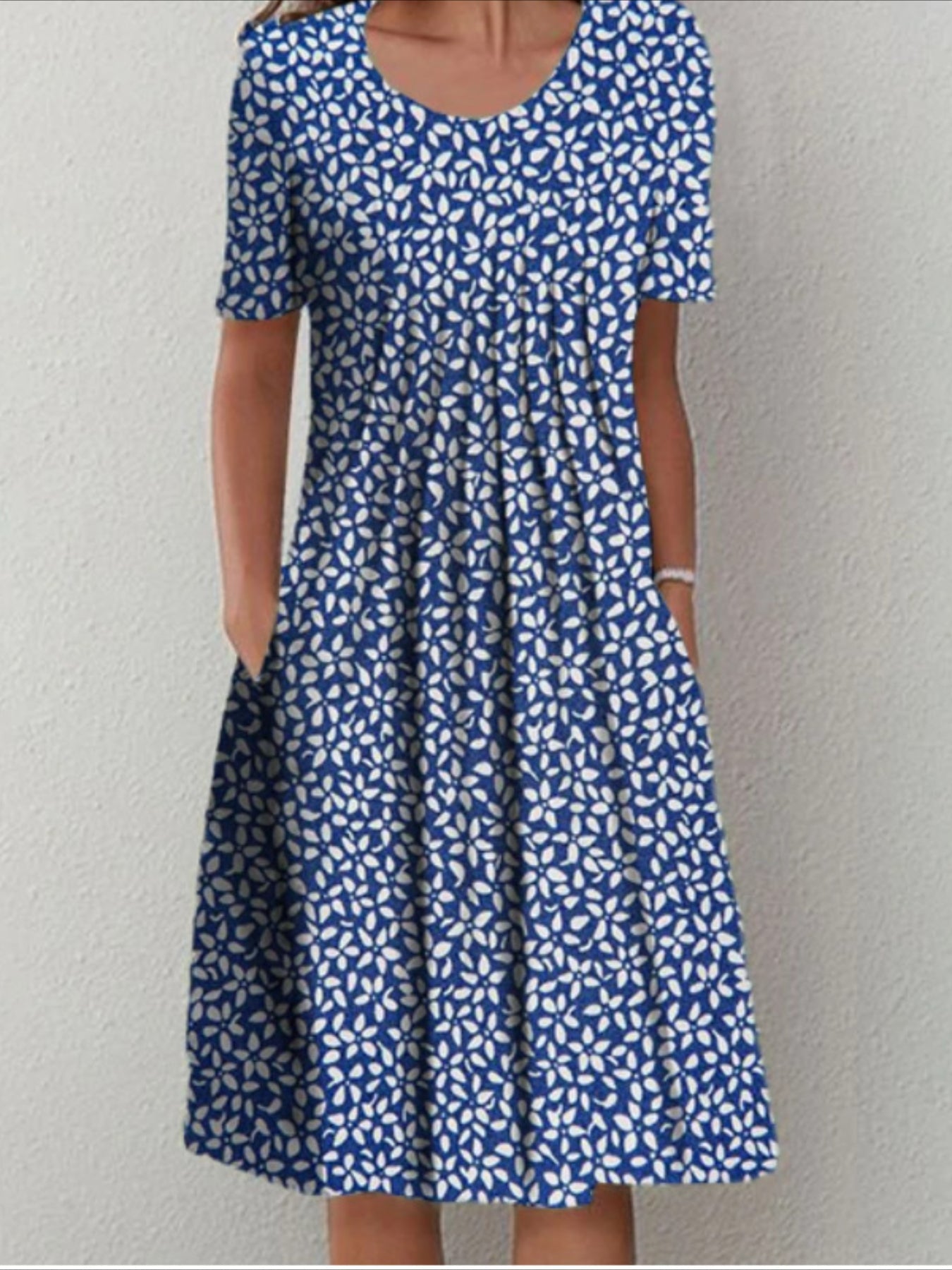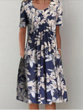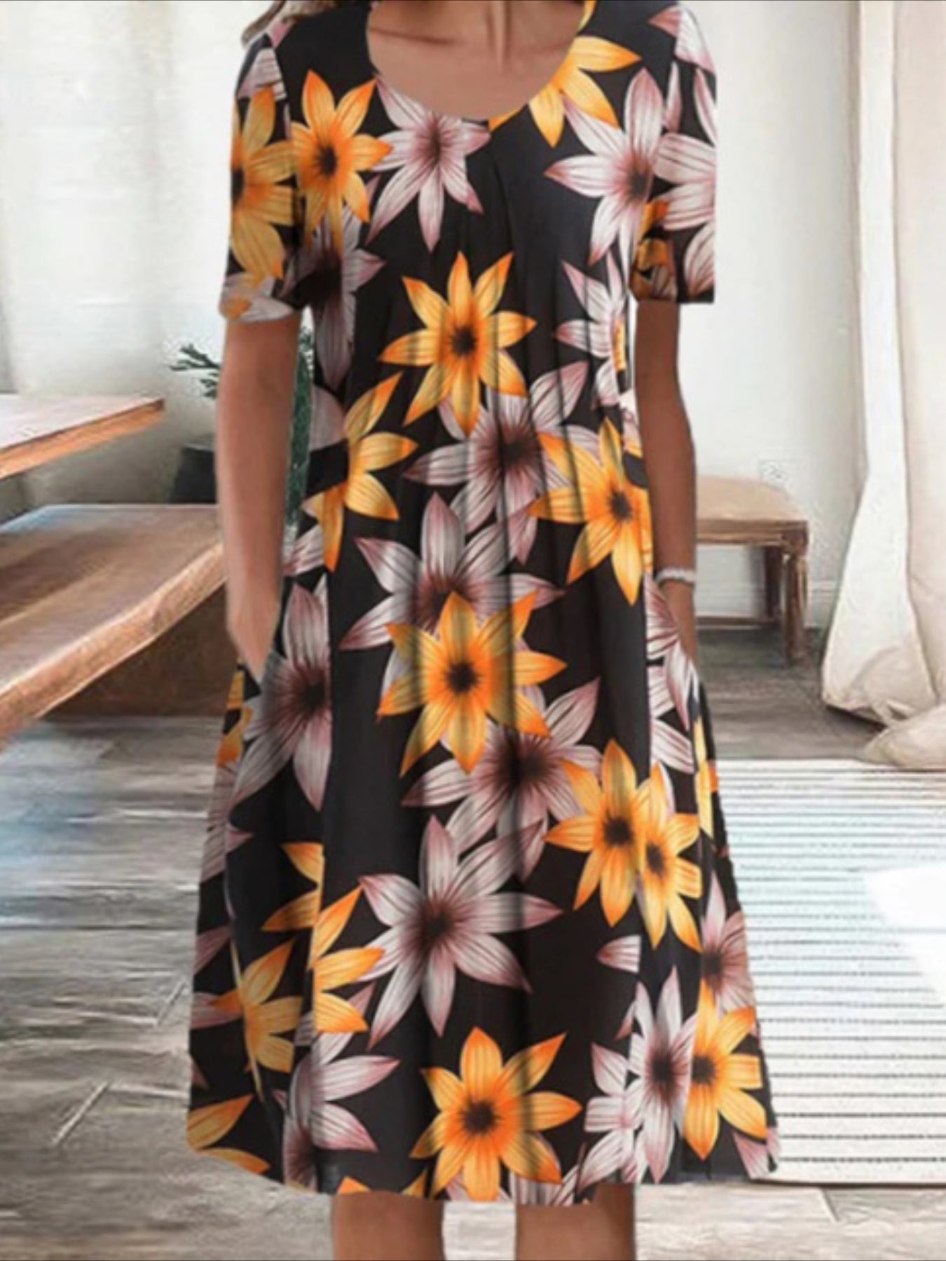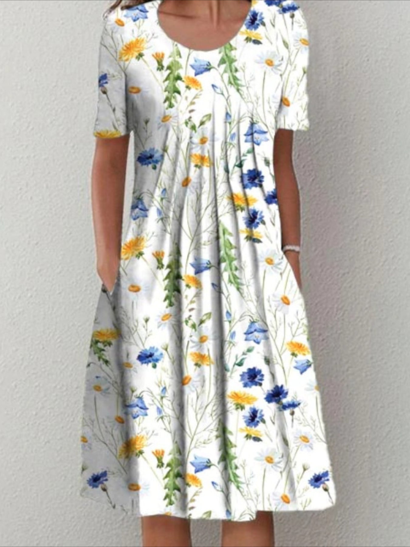 Casual Vacation Commute Floral Print Round Neck Short Sleeve Dress