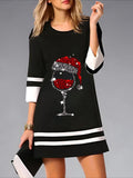 Creative Retro Printing Comfortable Soft Crew Neck Hip Wrap Knitted Sweater Dress