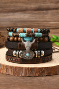 Chestnut 6 Piece Western Bull Skull Turquoise Beading Bracelet