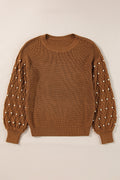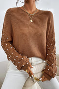Chestnut Beaded Drop Shoulder Round Neck Sweater