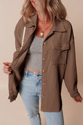 Chestnut Corduroy Flap Pocket Button Up Shacket