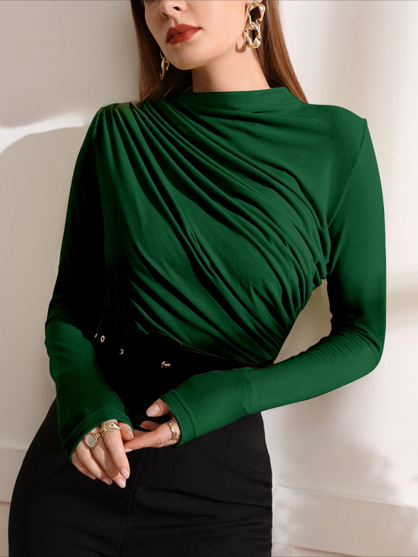 Chic Fall/Winter Ruched Mock Neck Long Sleeve Top