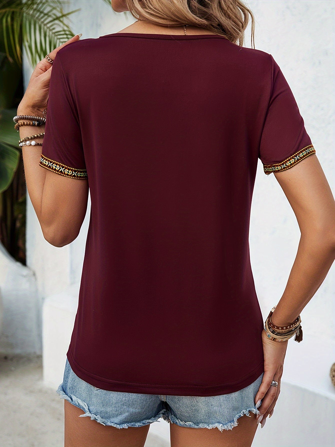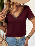 Chic Short Sleeve Elegant Maroon V-Neck T-Shirt