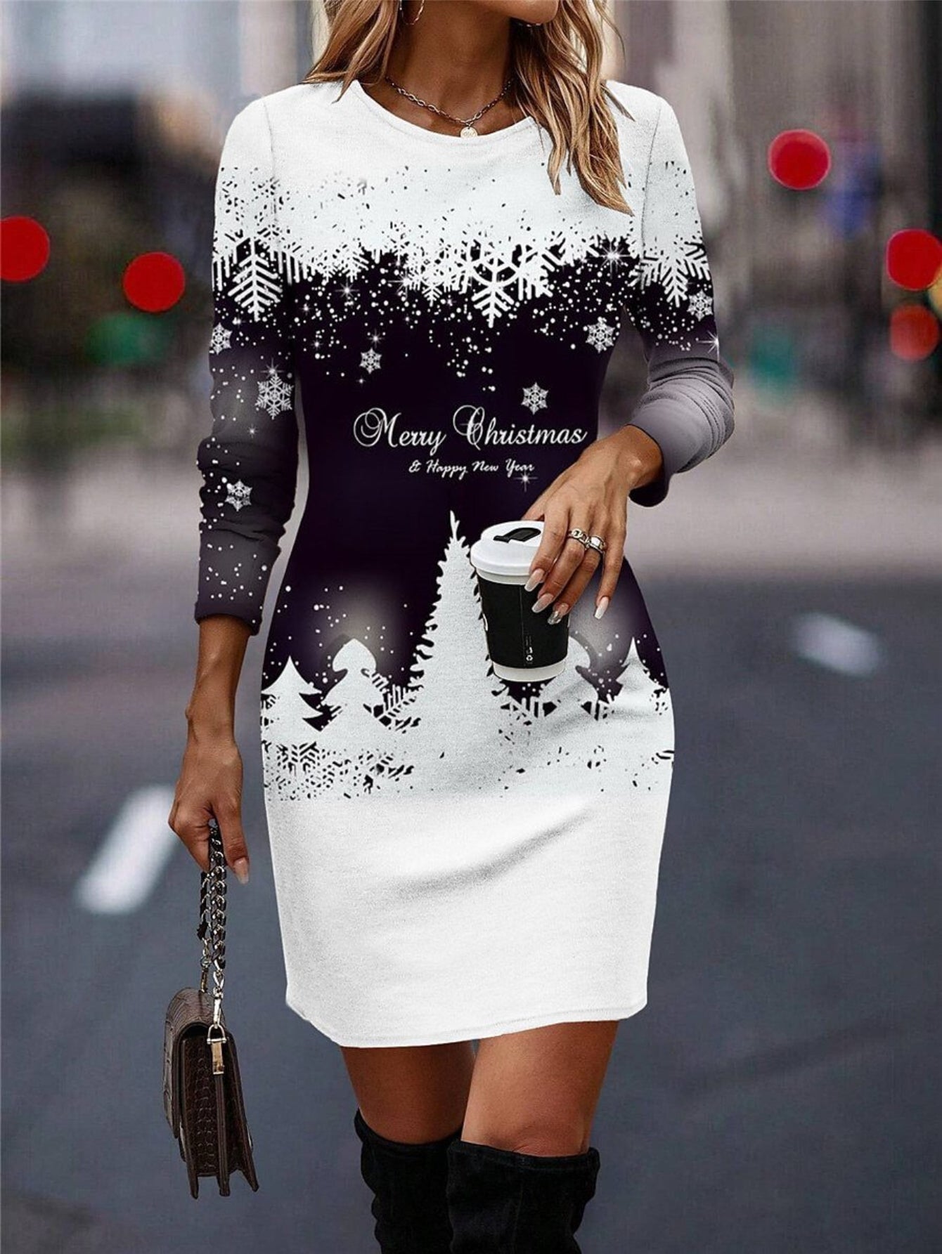 Chic Snowflake Print Bodycon Dress for Women - Vintage Style, Stretchy Polyester Blend