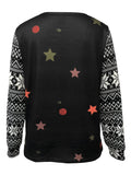 Sale Christmas Pattern Crew Neck Pullover Sweater, Casual Long Sleeve Thin Sweater