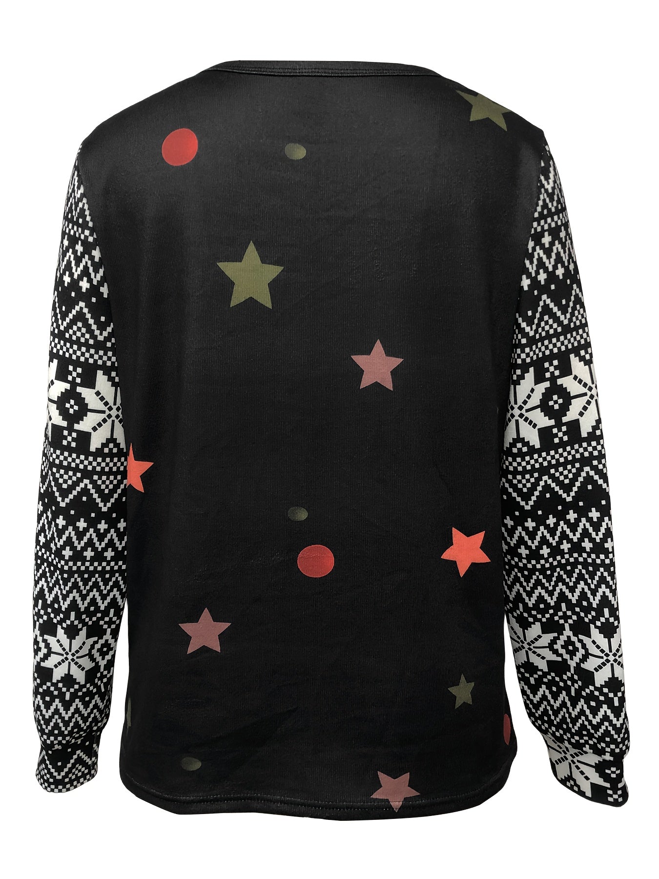 Christmas Pattern Crew Neck Pullover Sweater, Casual Long Sleeve Thin Sweater