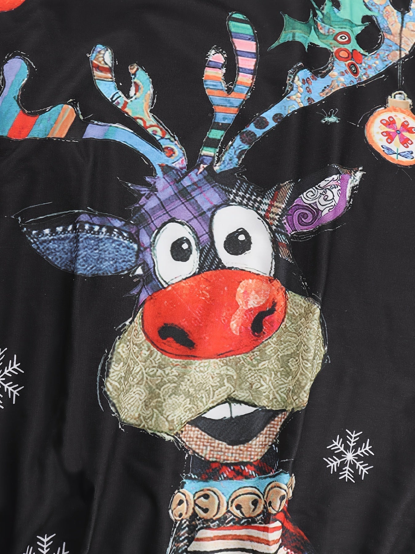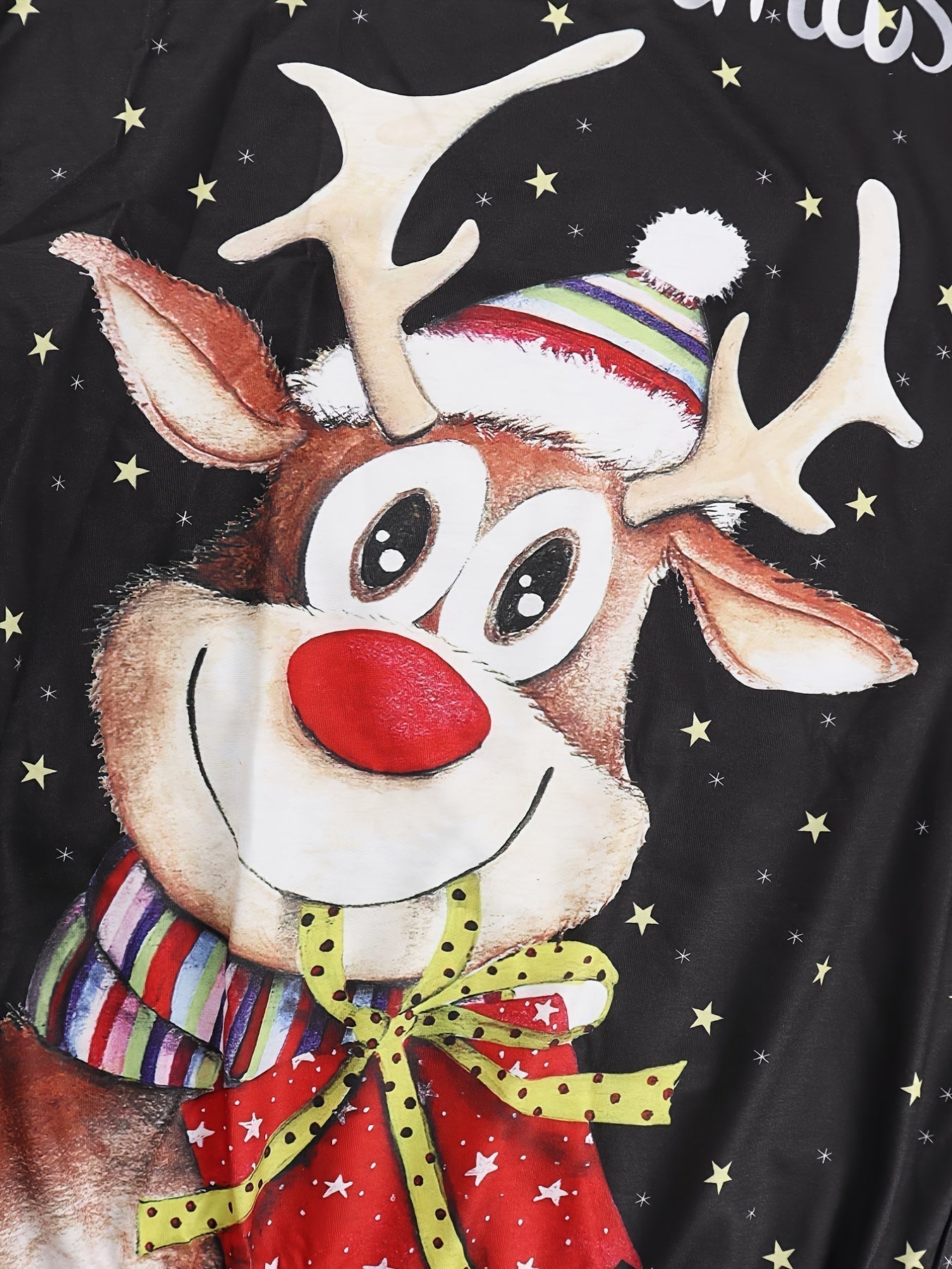 Festive Christmas cartoon pattern adds a playful touch to your holiday attire Crafted from warm...