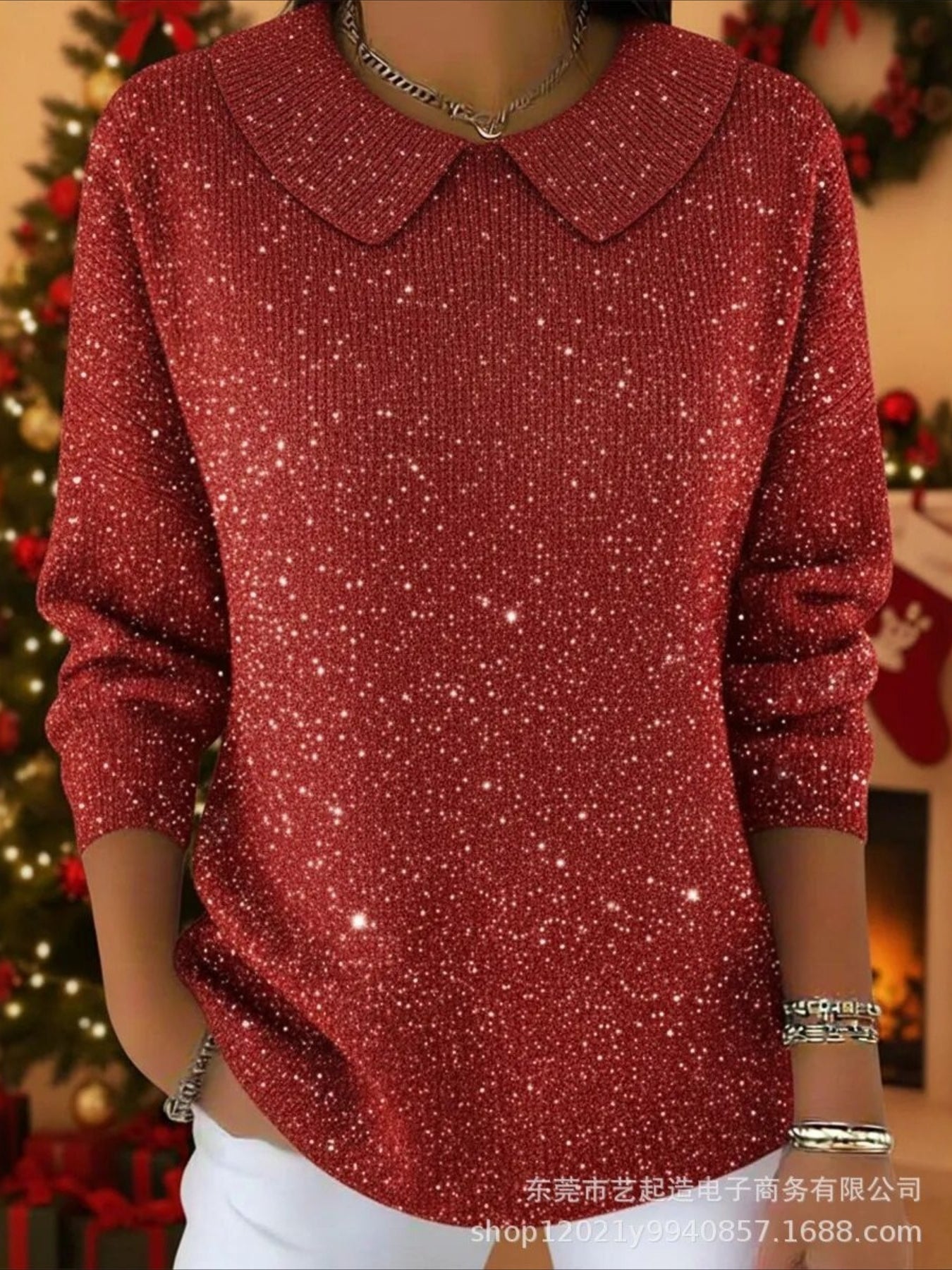Christmas Printing Spring/Fall Casual Long Sleeve Shawl Collar Sweater