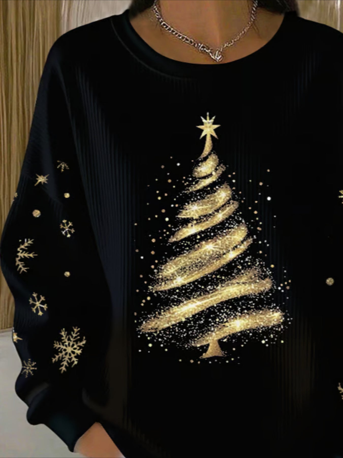 Casual Christmas Tree Printing Long Sleeve Sweatshirt
