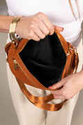 Cinnamon Double Zip Faux Leather Crossbody Bag