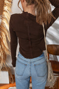 Sale Cinnamon Lettuce Trim Raw Seam Patchwork Jacquard Long Sleeve Top